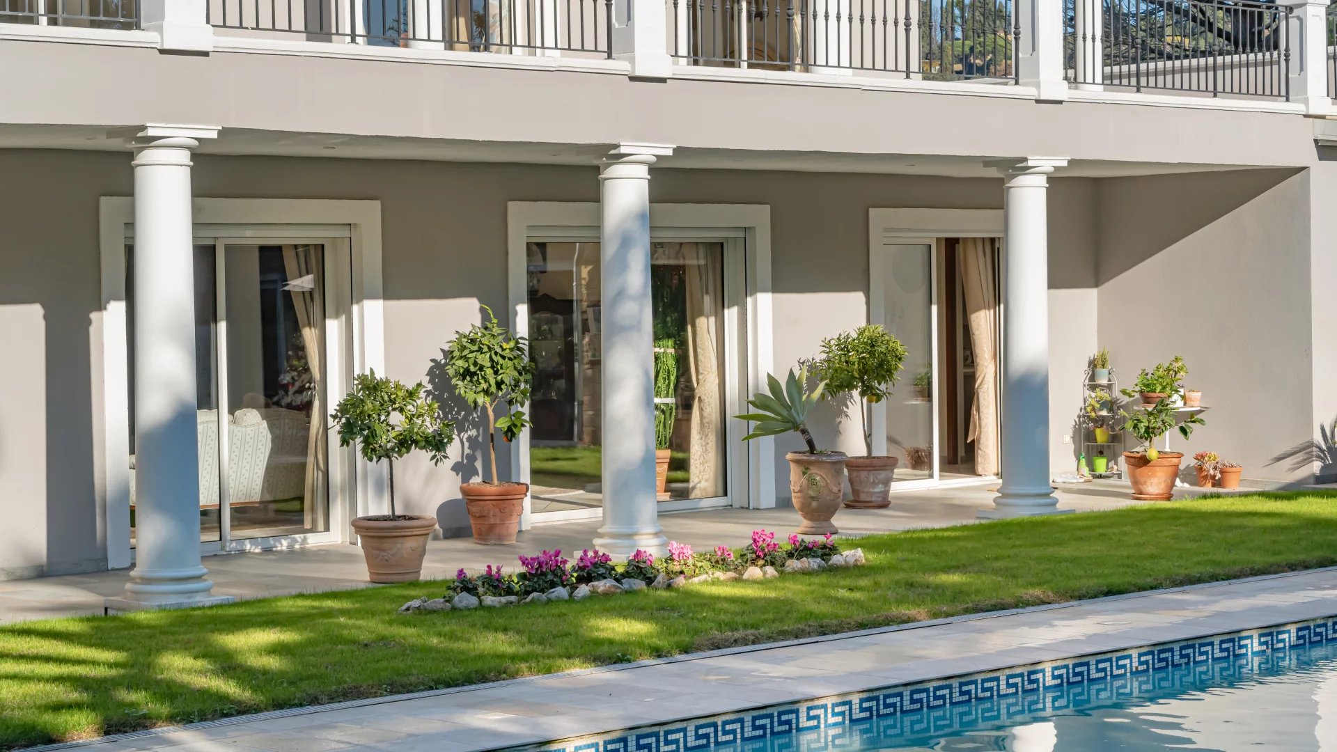The 1,650 m2 Mediterranean-style park features a stunning heated pool (11.5 x 5.5 meters) with an electric cover for optimal safety, as well as two garden sheds.