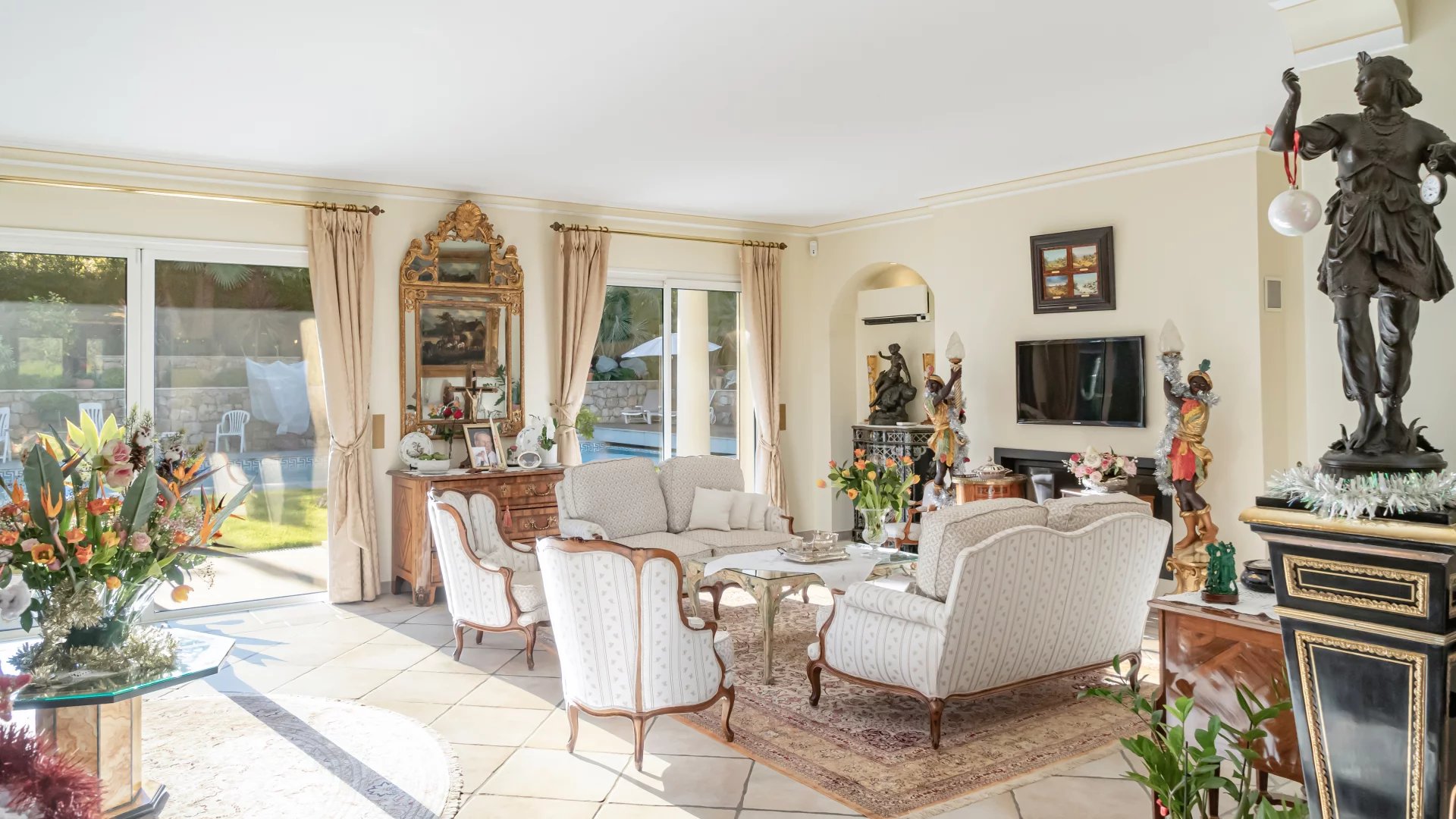 Located in the heart of Mougins, in a sought-after gated estate, this elegant 265 m2 villa stands out for its refinement and impeccable maintenance, immediately noticeable at first glance.