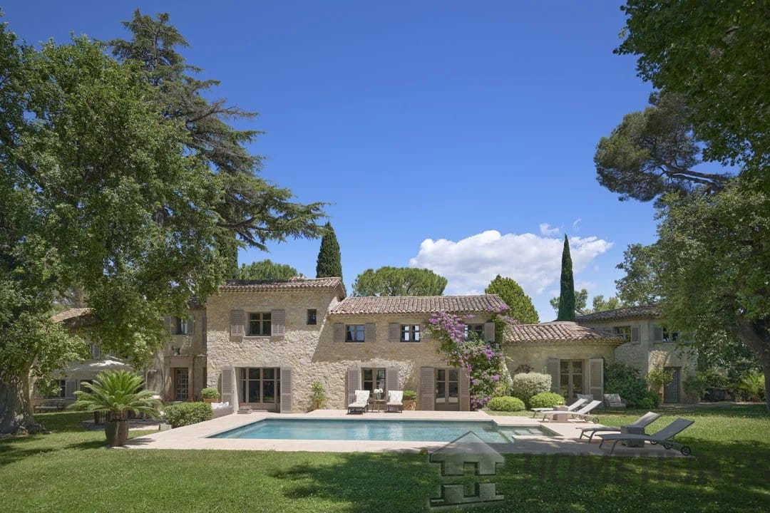 In a gated estate with a tennis court, this gorgeous 18th-century mas fully renovated of approximately 540 square meters is the perfect combination between authenticity and contemporary elegance. Each room tells a story, from the various reception areas to the five bedrooms, all with its own bathroom or shower.