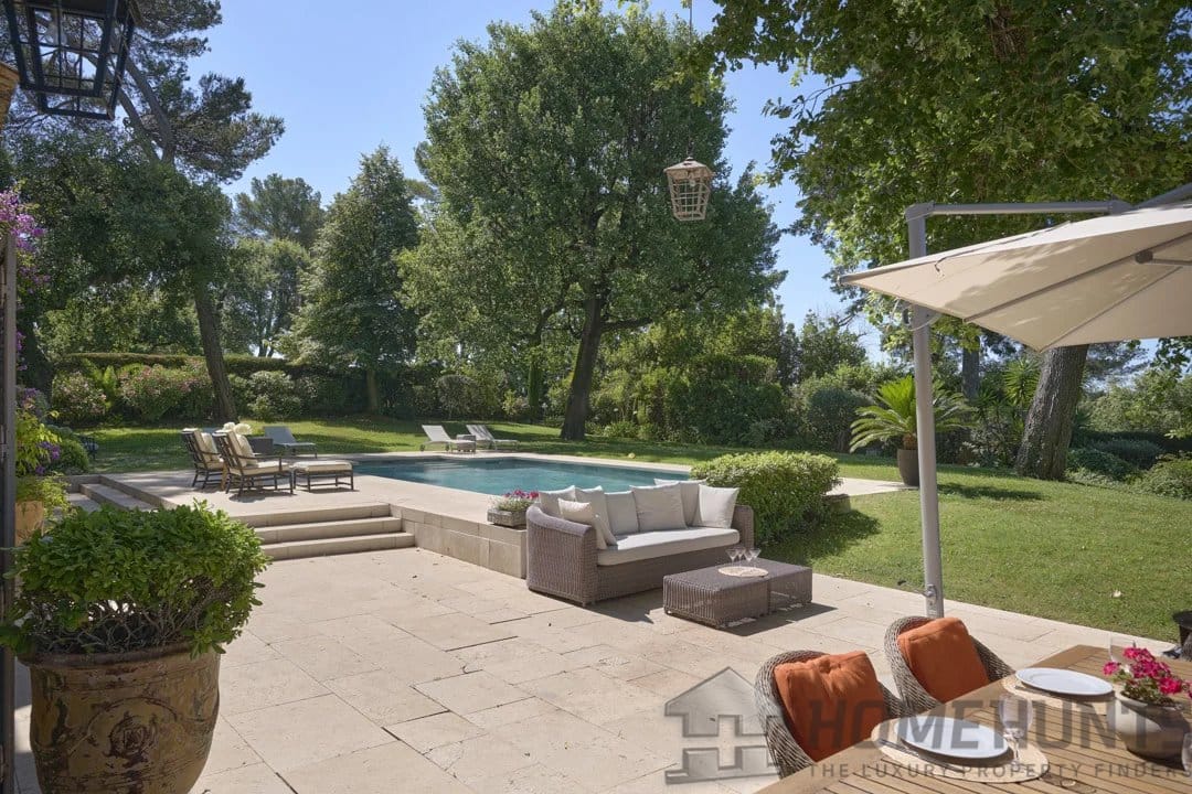 Ideally located on the highest point of the estate, the property enjoys an unobstructed view extended to the old village of Mougins. The multiple outdoor spaces, whether shaded or bathed in sunlight according to preference, evokes the gentle lifestyle and charm of Provence.