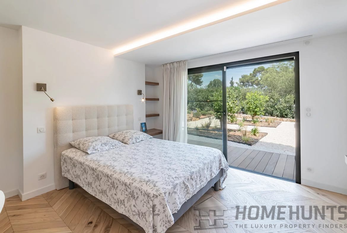 Additional features include a garage and ample outdoor space, all within a prestigious residential enclave just moments from Cannes and the Côte d’Azur’s golden triangle.
