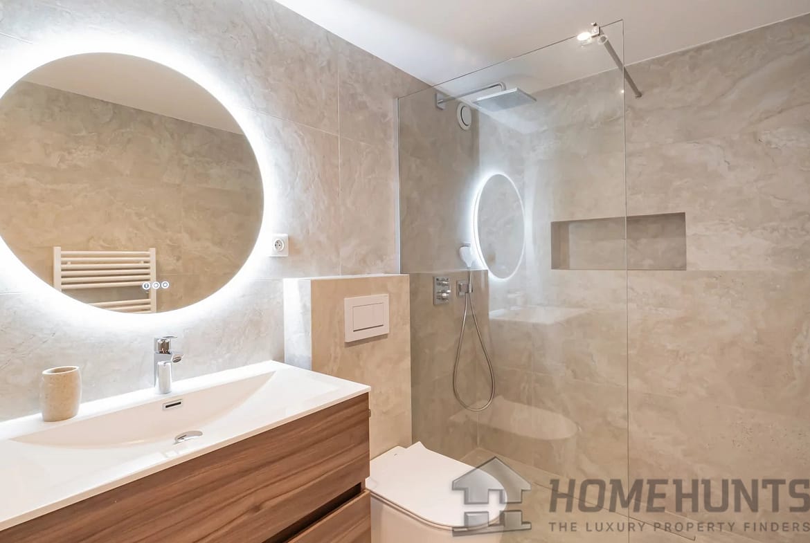 The villa features four bedrooms, including a magnificent single-storey master suite with its own en suite shower room and dressing area, offering comfort and privacy in a refined setting.