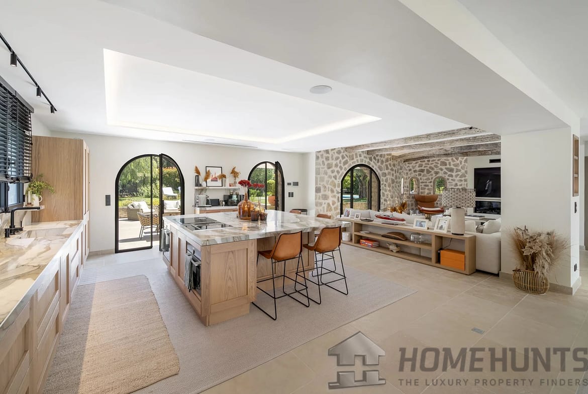 This 5-bedroom villa has recently been renovated in a style that blends authenticity and modernity. The charm of the stone and wood is enhanced by the refined, contemporary interior design.