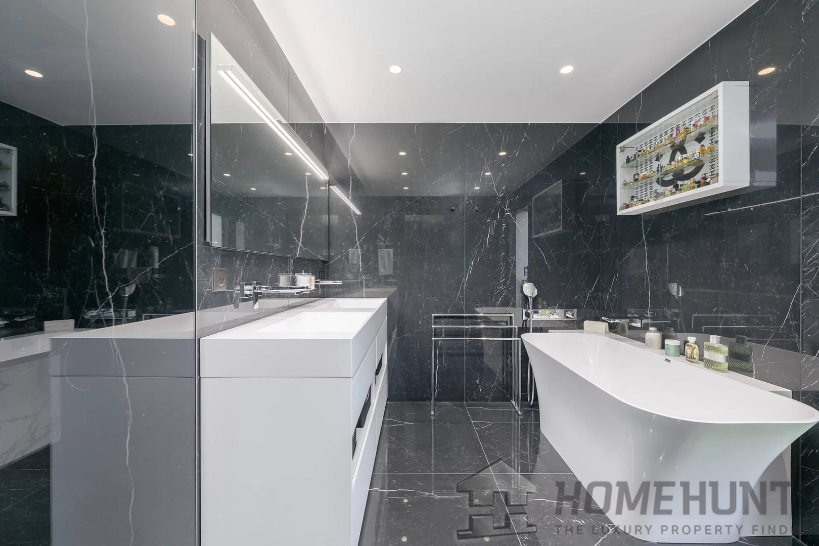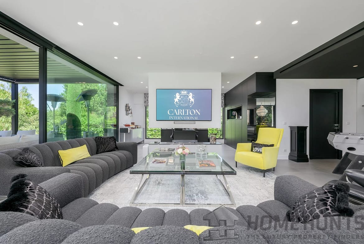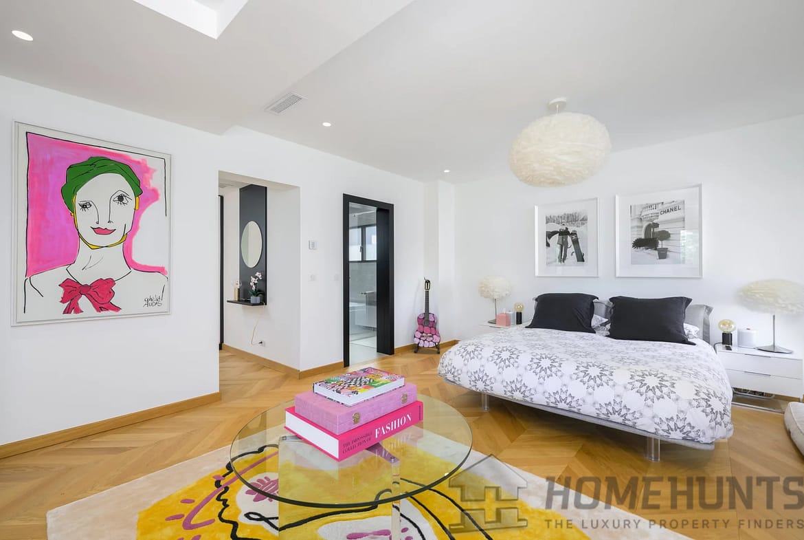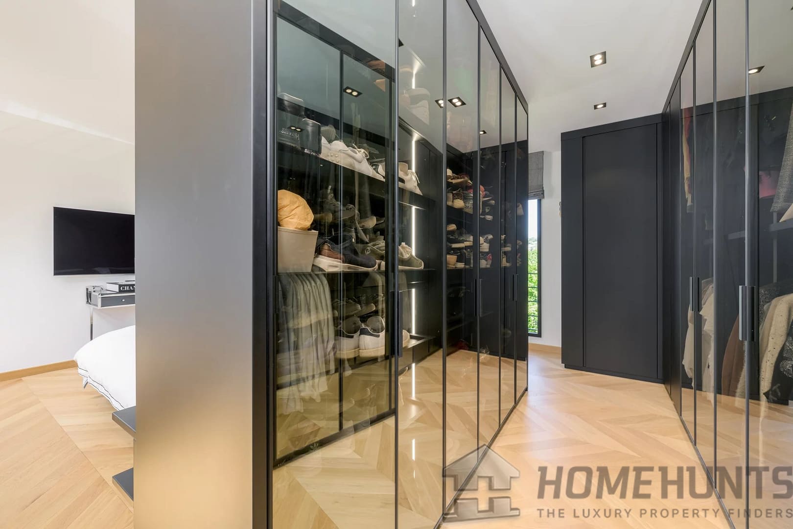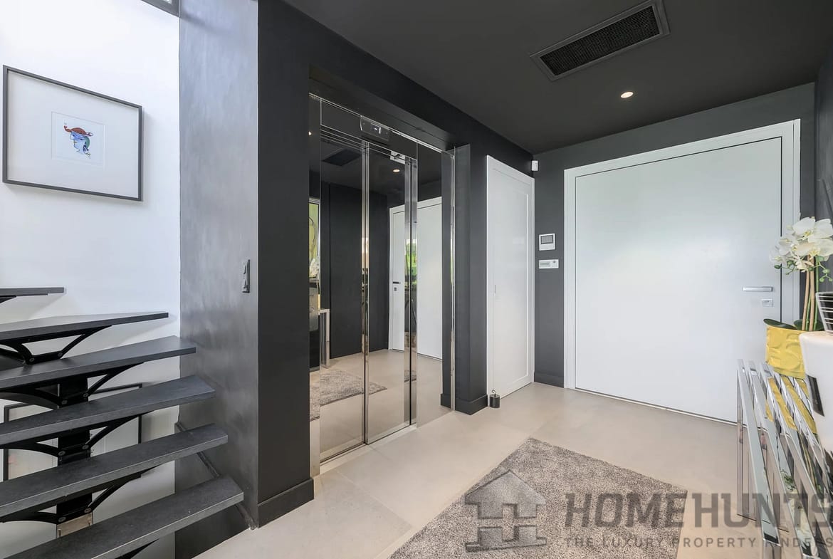 Set on a beautifully landscaped plot of over 1,500 m2, the villa offers approximately 330 m2 of living space and combines high-end features with comfort, modernity, and refined finishes. It comprises four spacious en-suite bedrooms, each with a private shower room and walk-in closet, as well as a large, light-filled living area enhanced by expansive motorized bay windows. A private elevator serves all levels, ensuring ease of movement throughout the home.
