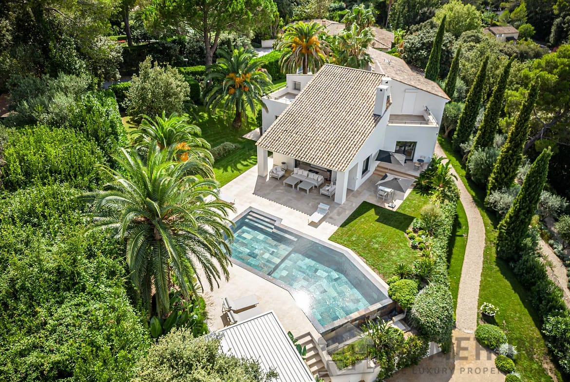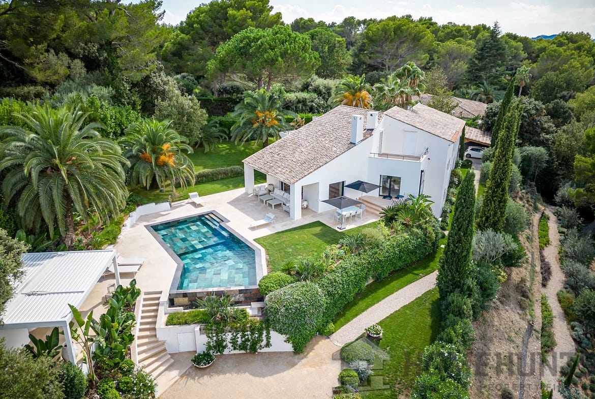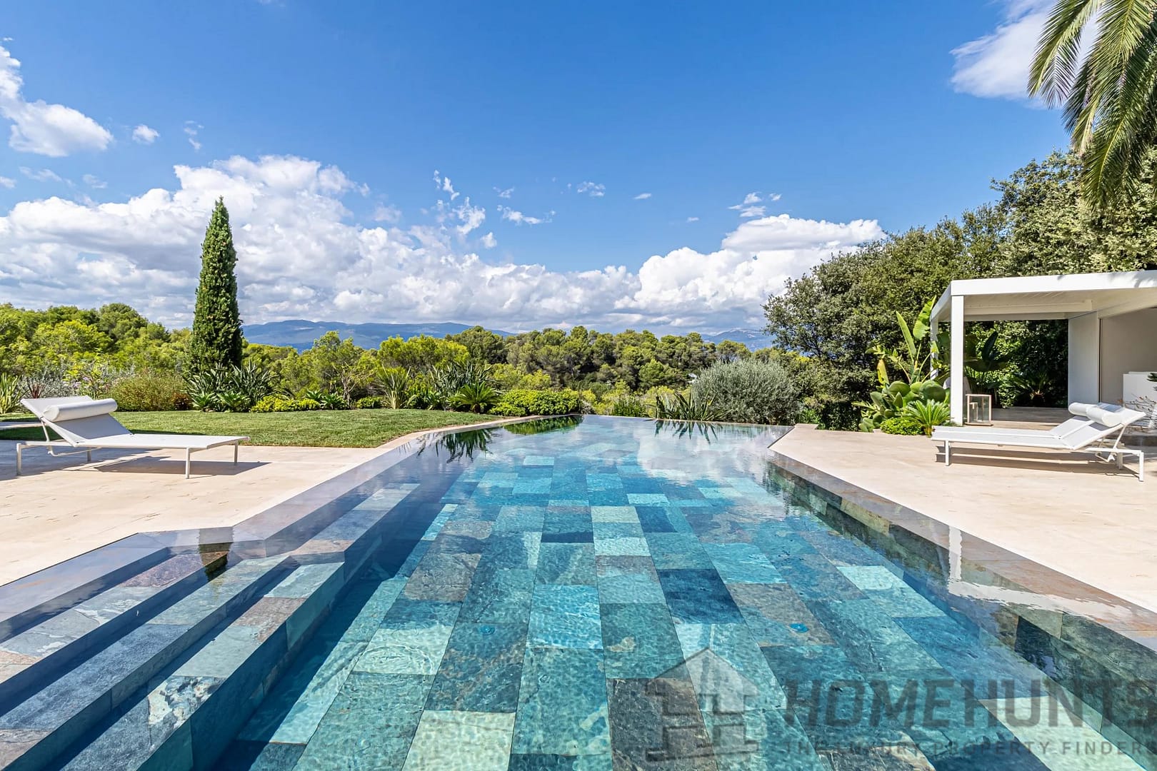 In the very coveted and ultra secure Domaine des Parcs in Mougins, magnificent property of 350m2 completely renovated with high-end finishes. In a dominant position in the middle of the estate, it benefits from an environment of great tranquility and a lovely view of the surrounding nature and the Alps mountains. Inside, the villa has generous volumes and a perfect layout.