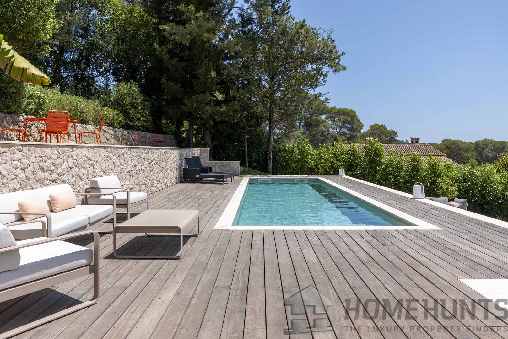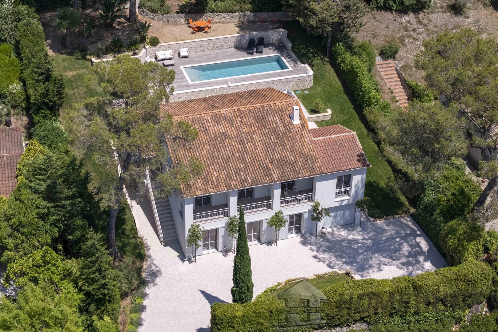 Facing due south, the property enjoys optimal sunlight throughout the day. The living spaces open onto a large terrace with a swimming pool — the perfect spot to enjoy sunny days in complete privacy.