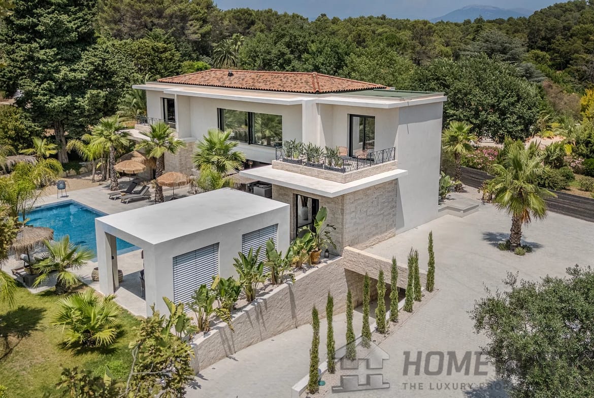 Annexes include a storeroom, laundry room, wine cellar and spacious, secure garage, as well as a host of modern amenities: integrated home automation, motorized shutters, centralized vacuuming, air-conditioned wine cellar and alarm system.