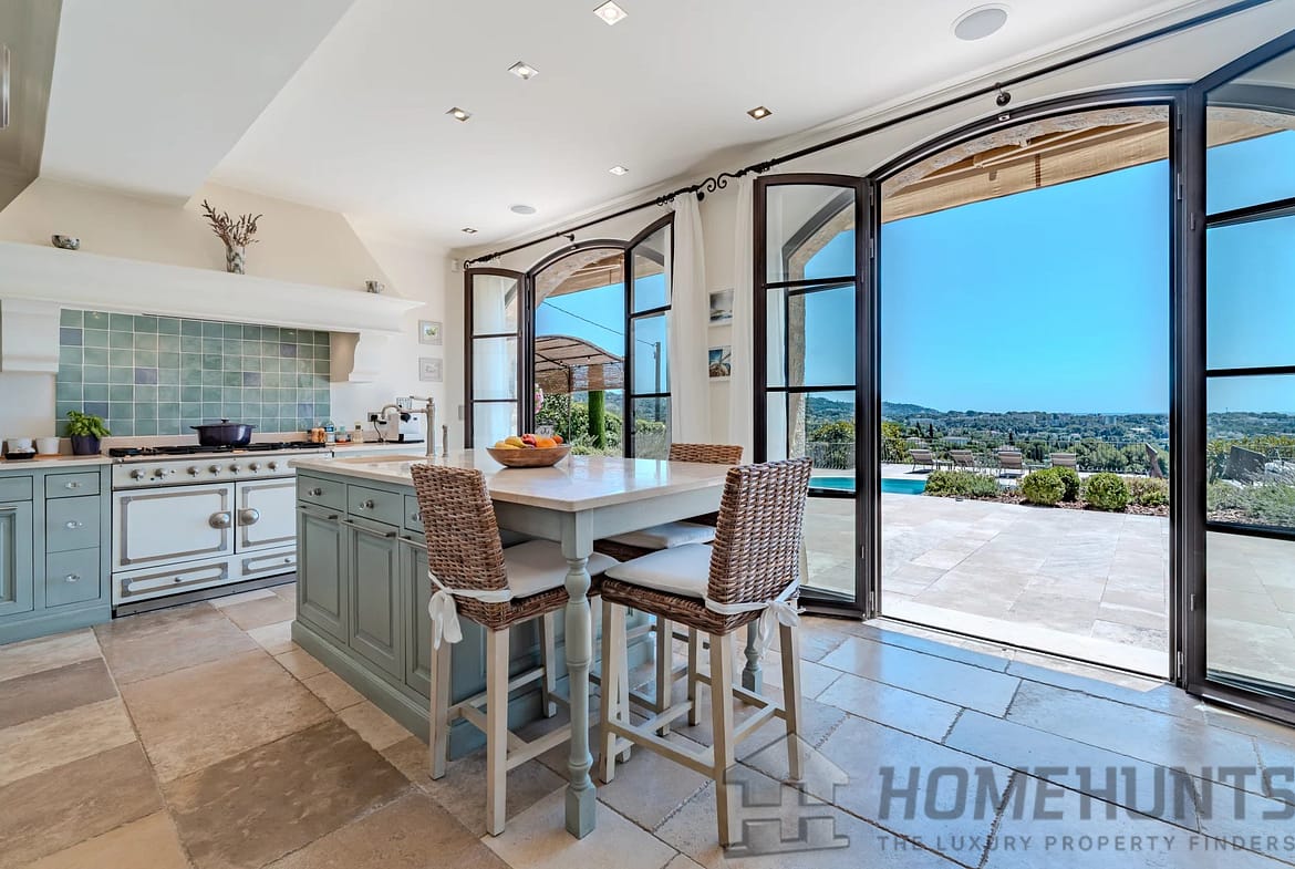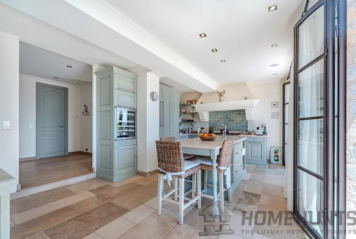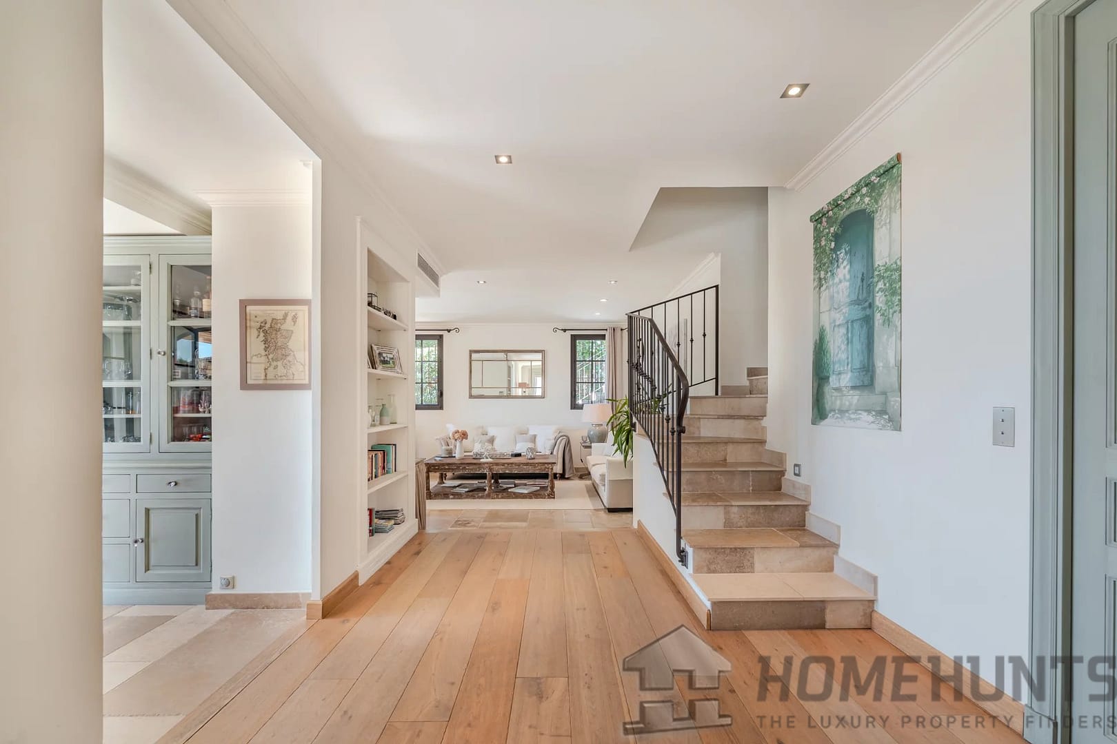 The villa welcomes guests through a generous entrance hall, leading to an inviting living and dining area that serves as the heart of the home. The state-of-the-art kitchen, featuring a La Cornue range oven and premium Gaggenau appliances, exemplifies culinary excellence, while a practical cellar and utility room provide essential storage and functionality. The property benefits from a very fast fibre internet connection.