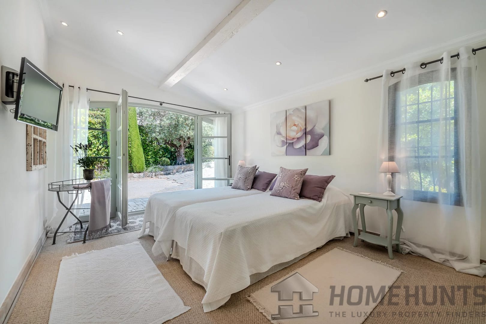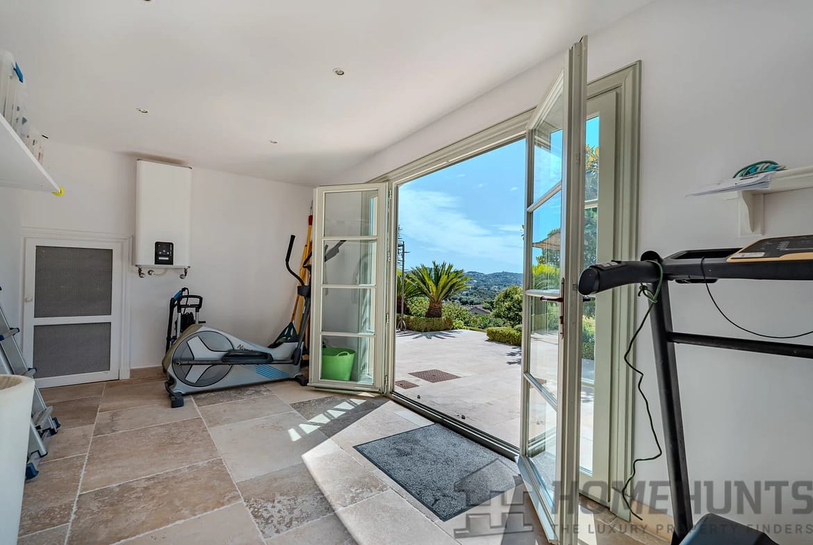 The property features a fully equipped gymnasium with direct garden access, promoting an active lifestyle within the comfort of home. The meticulously landscaped grounds include a charming fountain, a traditional pétanque court, and raised potagers for herbs and seasonal produce. The heated swimming pool adjoins the dining terrace and kitchen, creating perfect settings for relaxation and entertainment.