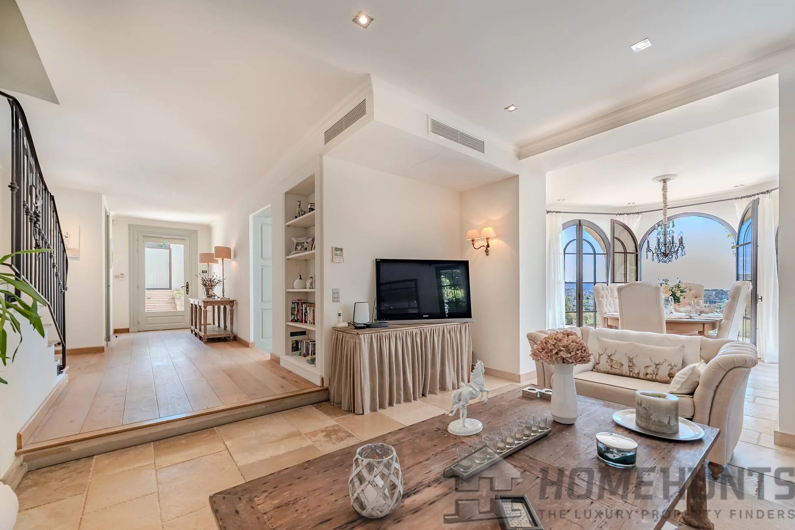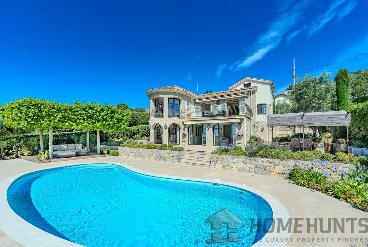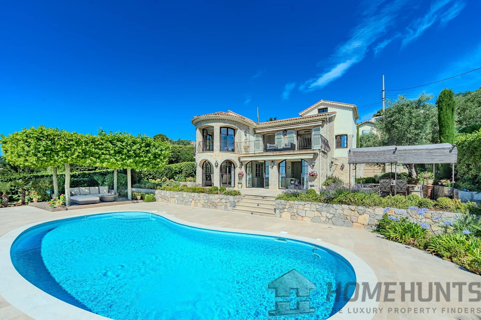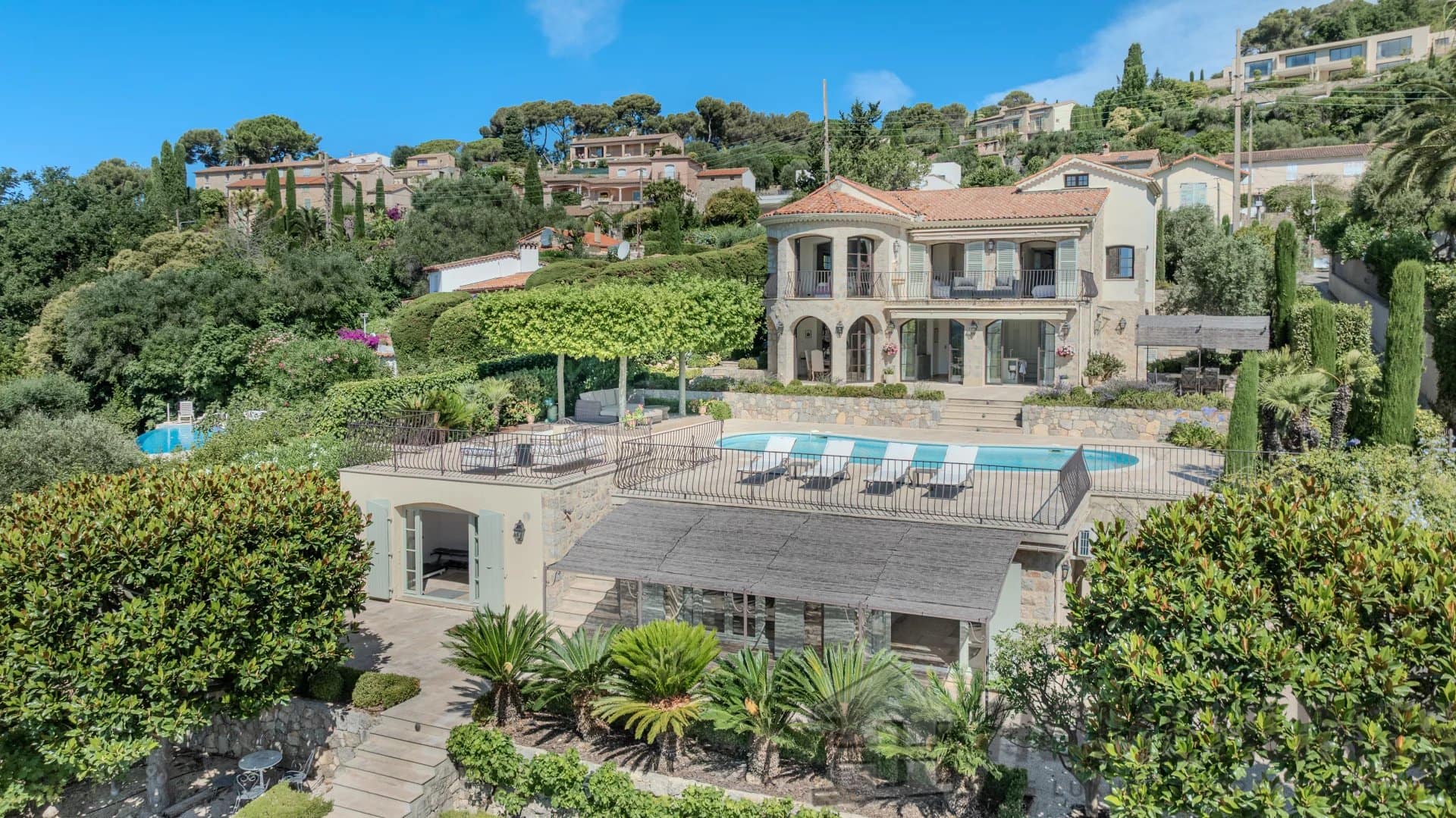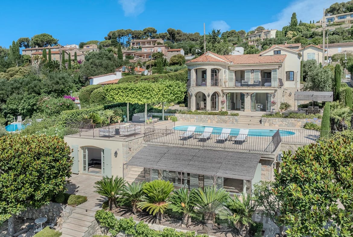 Nestled within a prestigious and tranquil residential enclave, this distinguished stone villa offers unparalleled privacy while commanding breathtaking panoramic sea views across the Bay of Théoule, providing an exceptional vantage point to enjoy spectacular firework displays. The property masterfully combines refined elegance with inviting warmth, creating an atmosphere of sophisticated comfort.