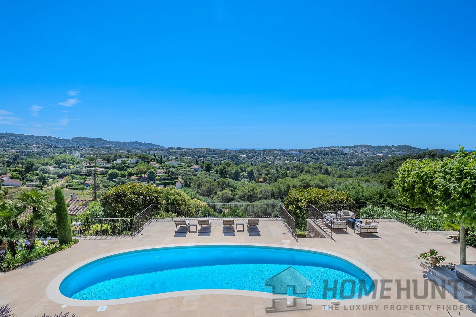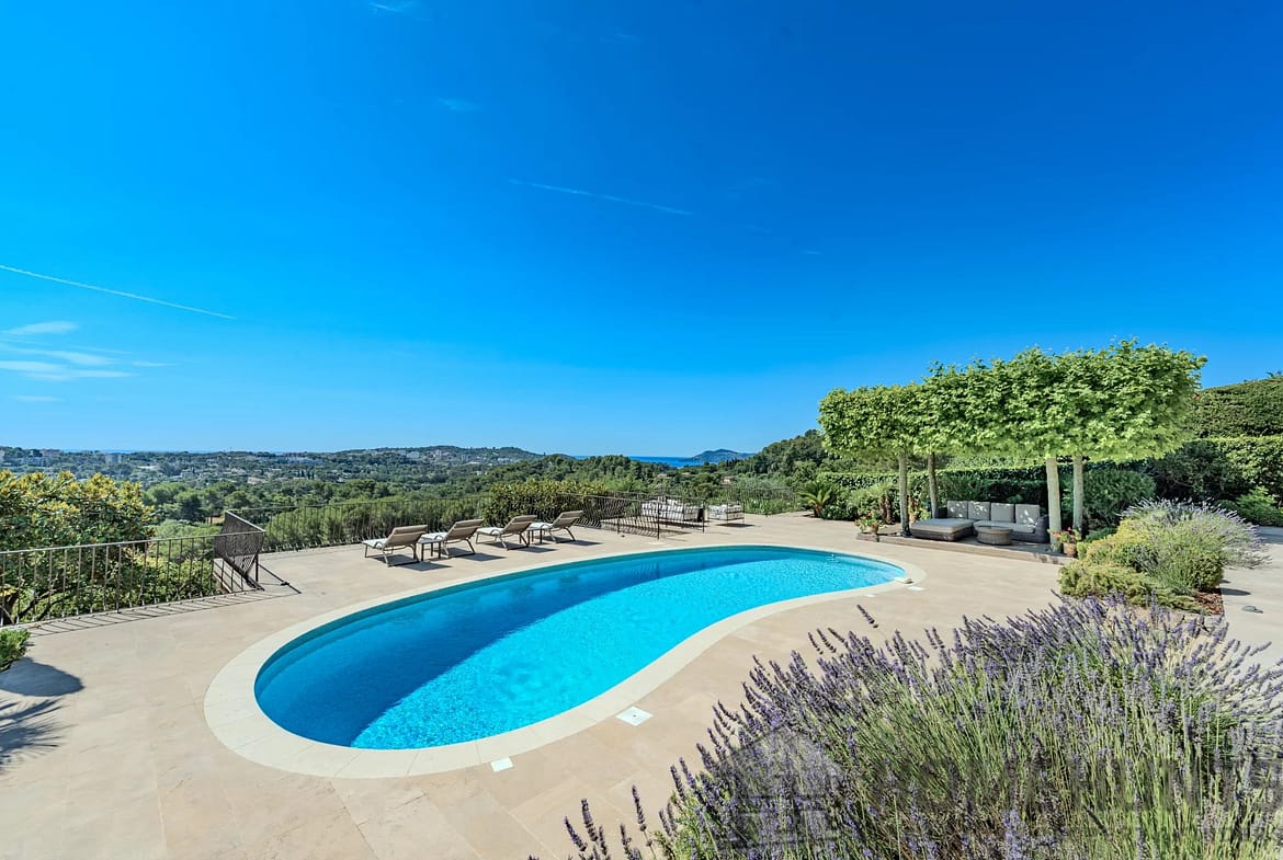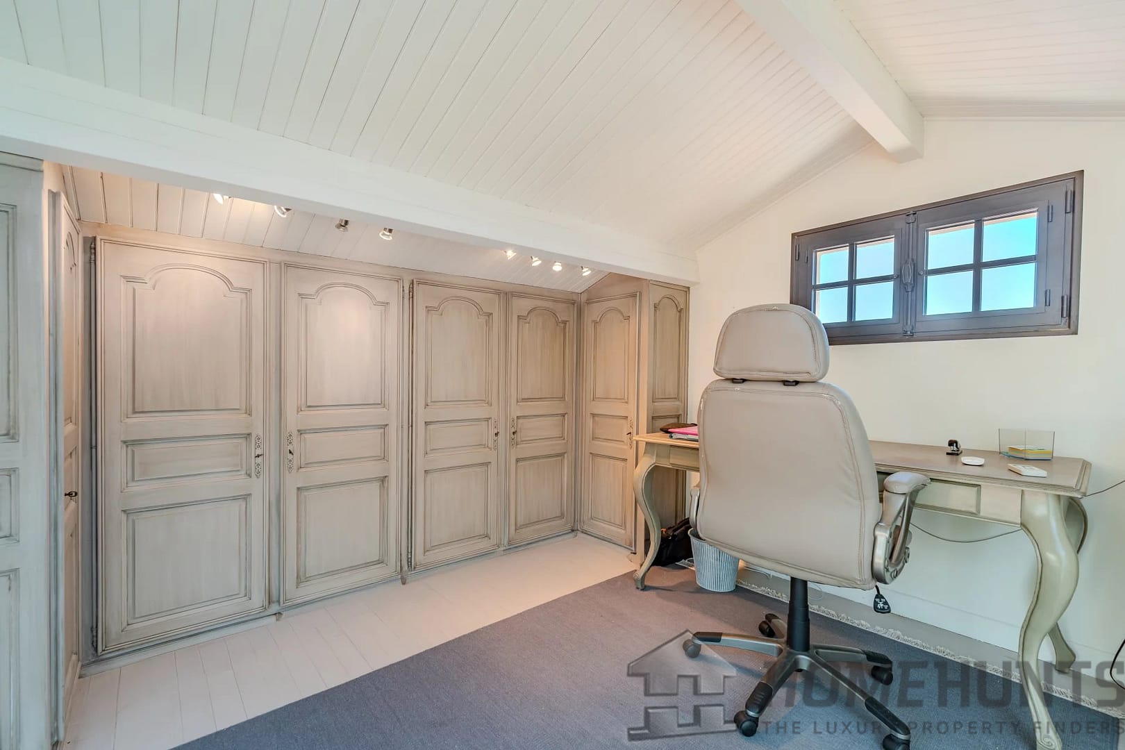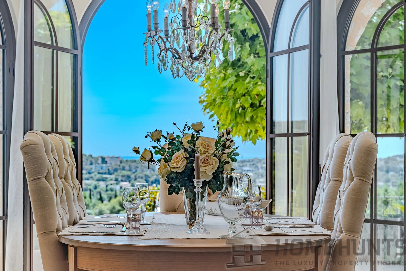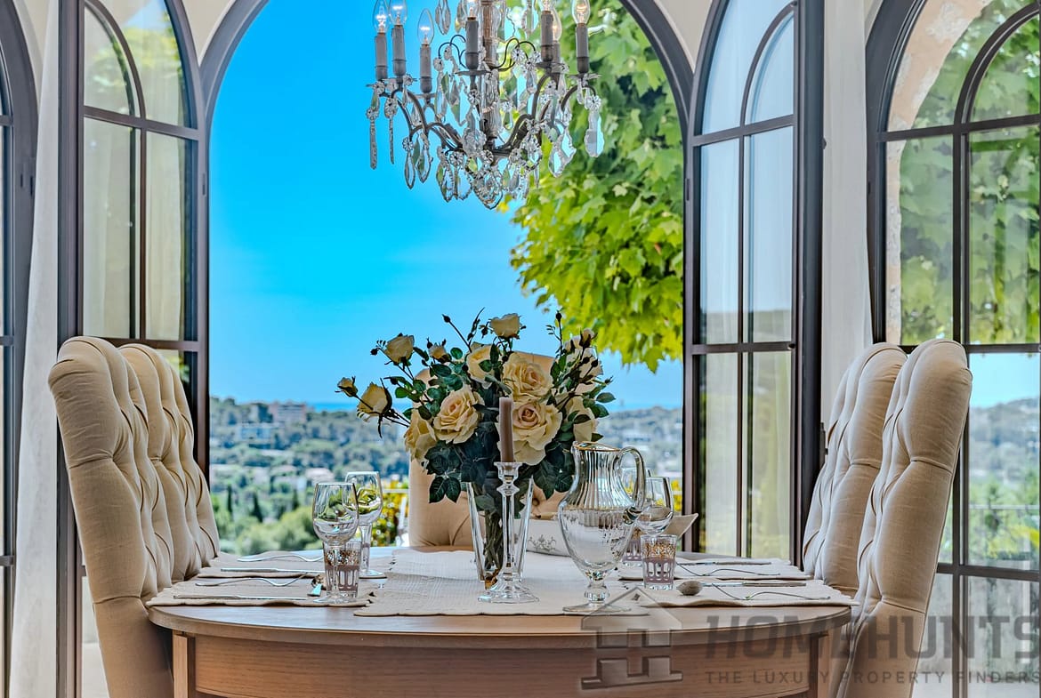 Nestled within a prestigious and tranquil residential enclave, this distinguished stone villa offers unparalleled privacy while commanding breathtaking panoramic sea views across the Bay of Théoule, providing an exceptional vantage point to enjoy spectacular firework displays. The property masterfully combines refined elegance with inviting warmth, creating an atmosphere of sophisticated comfort.