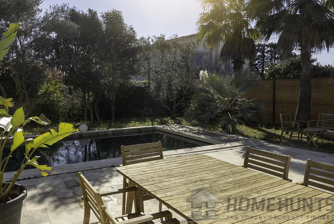Outside, a Bali-tiled swimming pool with integrated Jacuzzi invites you to relax, complemented by a 17 m2 outbuilding ideal for an office or guest room, a 98 m2 convertible basement, a petanque court and several parking spaces.