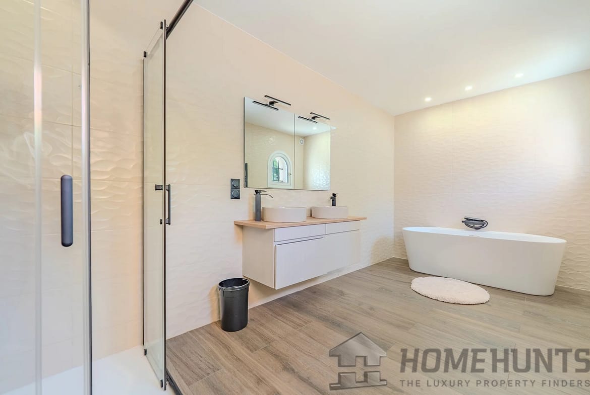 On the ground floor there is a basement, a double garage of 82m2, a wine cellar and a space that could become a gym or a home cinema.