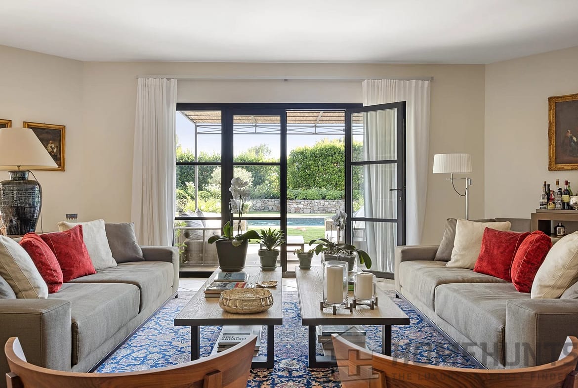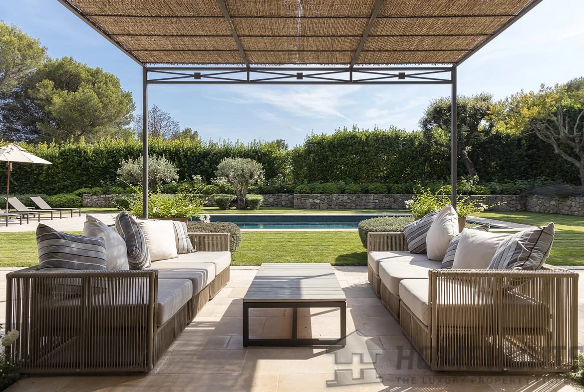 In the heart of a prestigious domain with 24/7 security and surrounded by a large forest park, this superb modern provencal style villa has been entirely renovated by a renowned architect, it seduces with its beautiful and discreet luxury features.