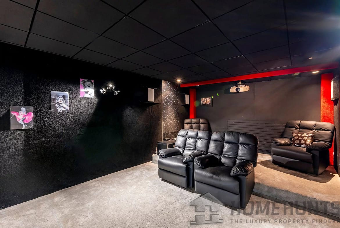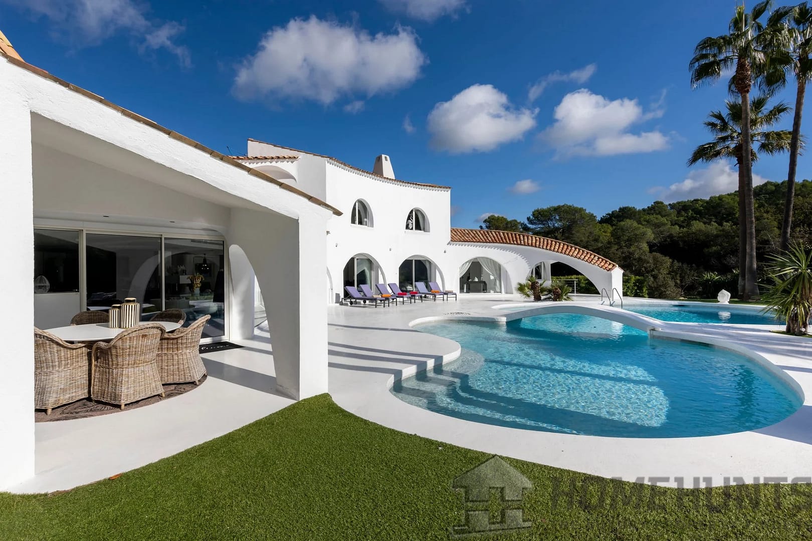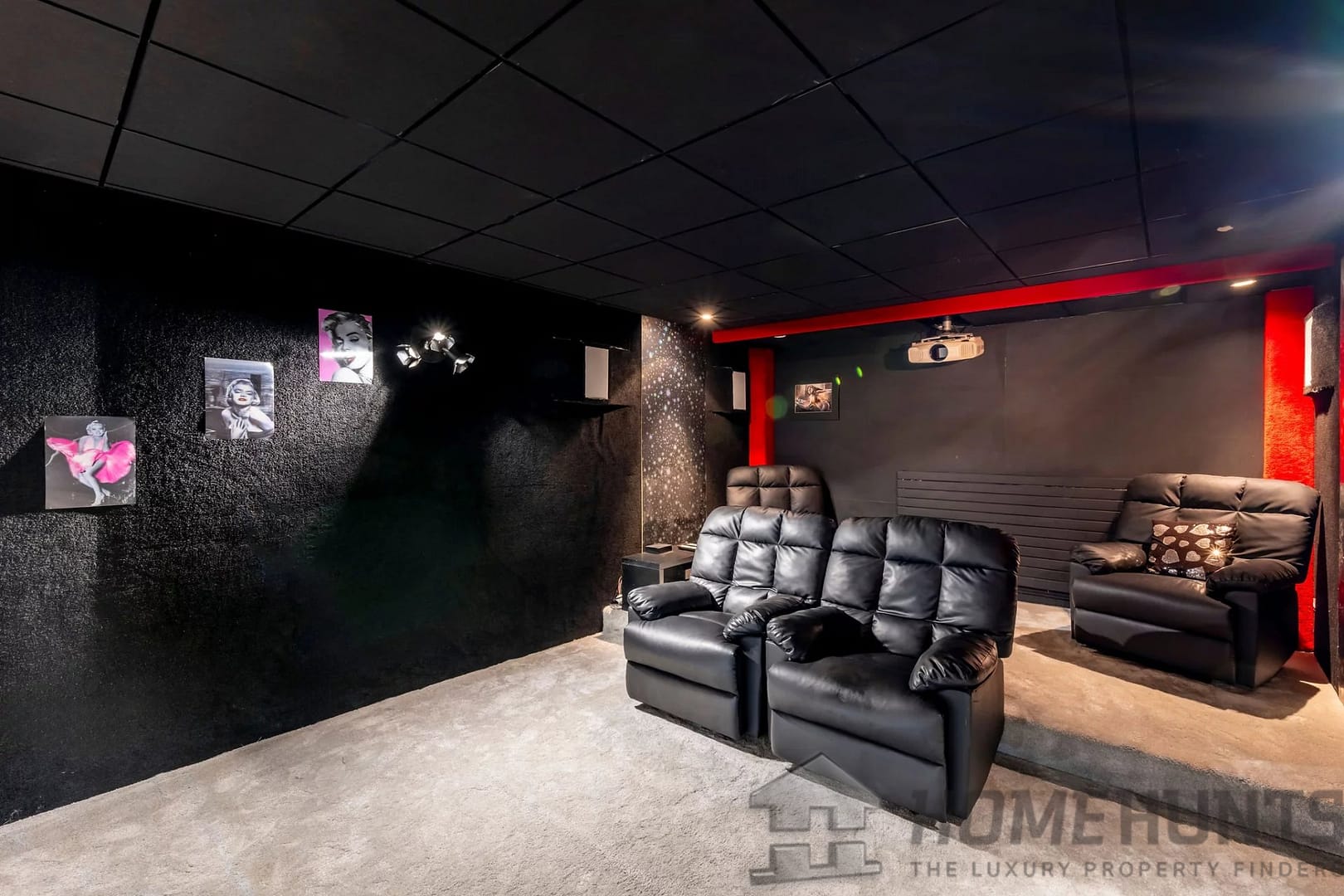 The home features well-designed volumes, including a spacious living area opening onto the garden, a principal suite, four additional bedrooms each with its own bathroom, a study, a cinema room, and an independent apartment equipped with a kitchen and bathroom.
