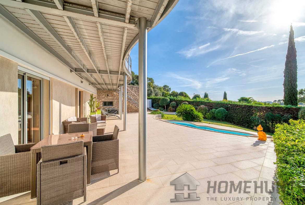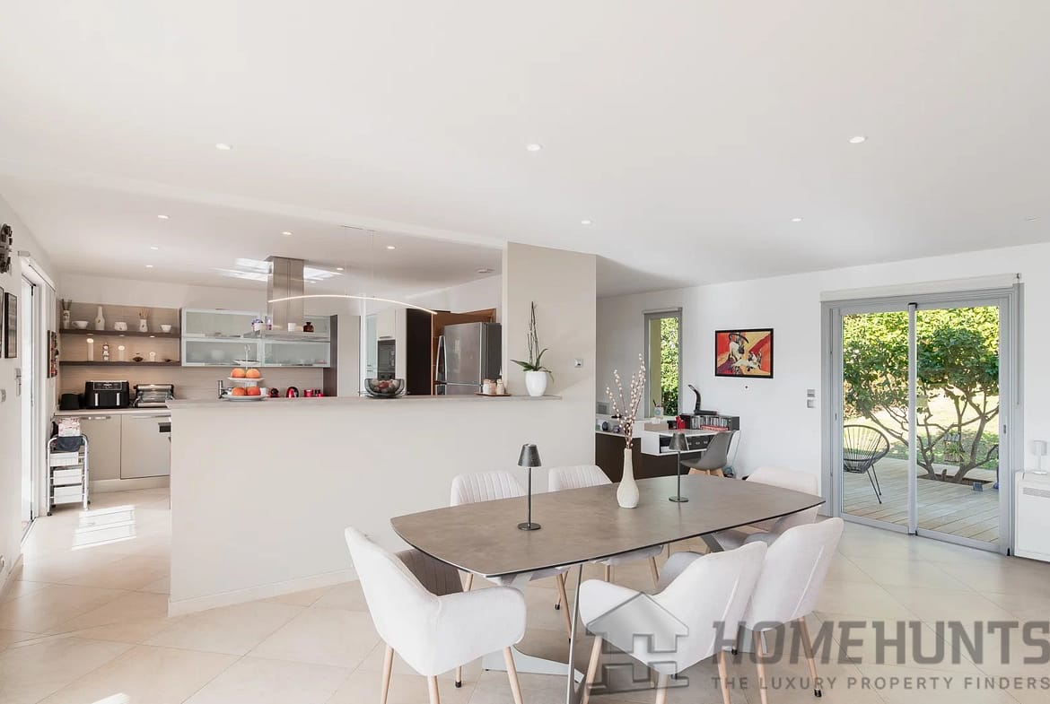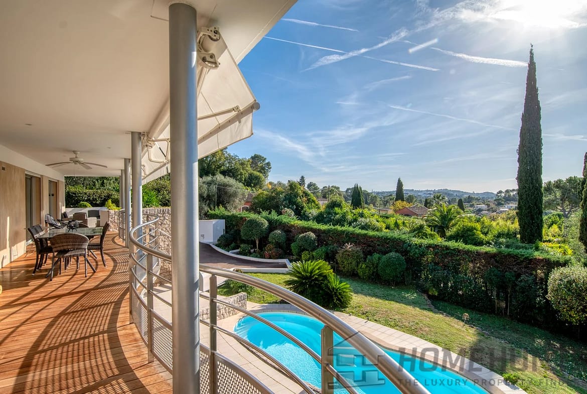 In one of Mougins’ most sought-after and peaceful neighborhoods, this elegant contemporary villa, built in 2005, offers a harmonious living environment that blends modern comfort with a preserved natural setting.