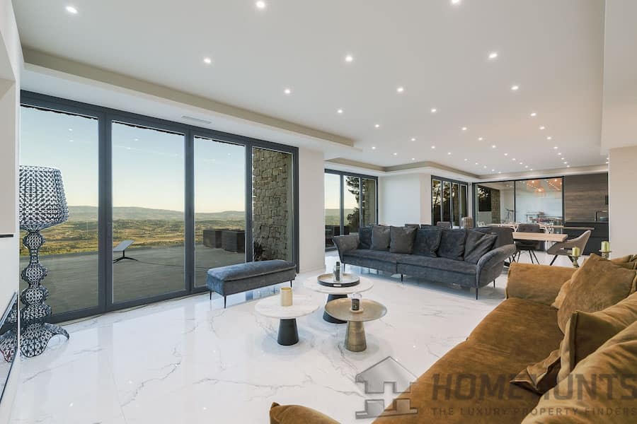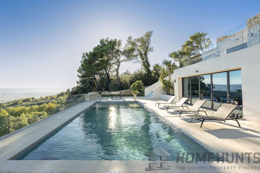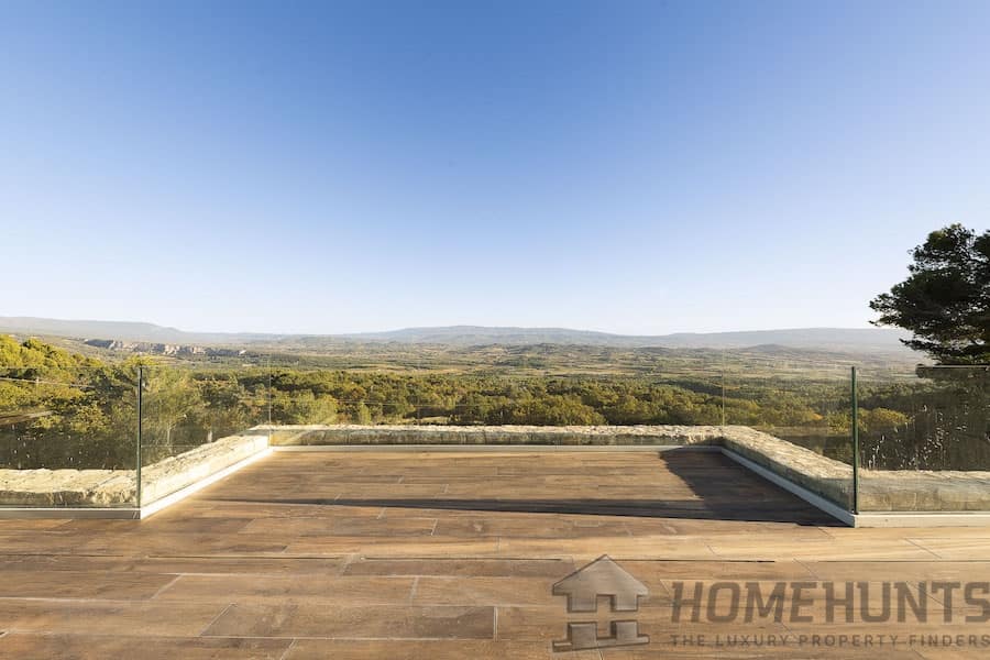 The outdoor areas of the property are equally spectacular, with a panoramic view of the surrounding countryside and a heated swimming pool.