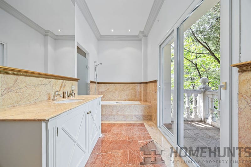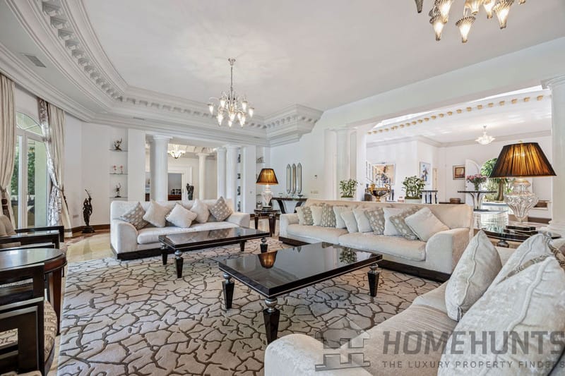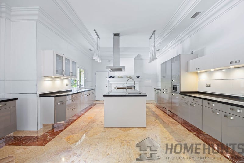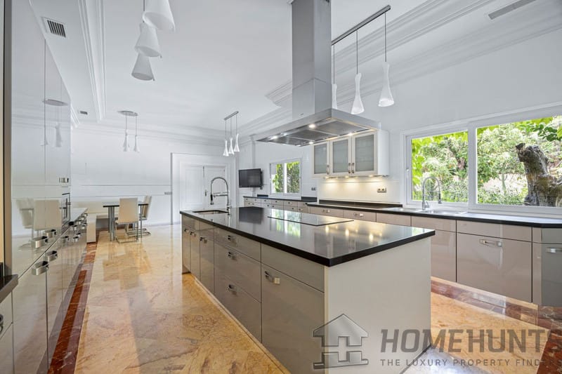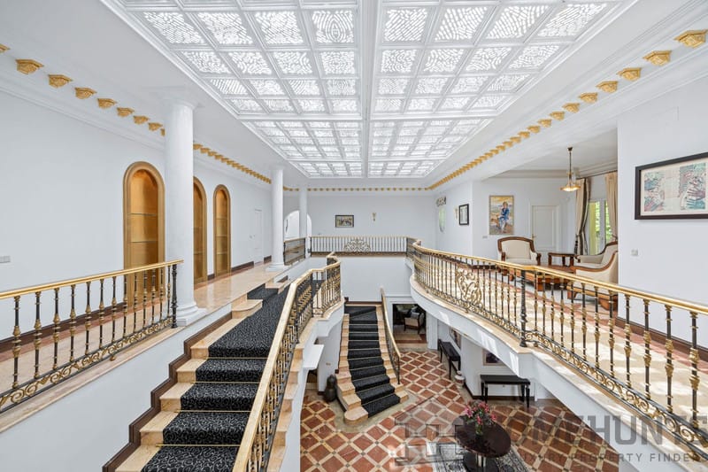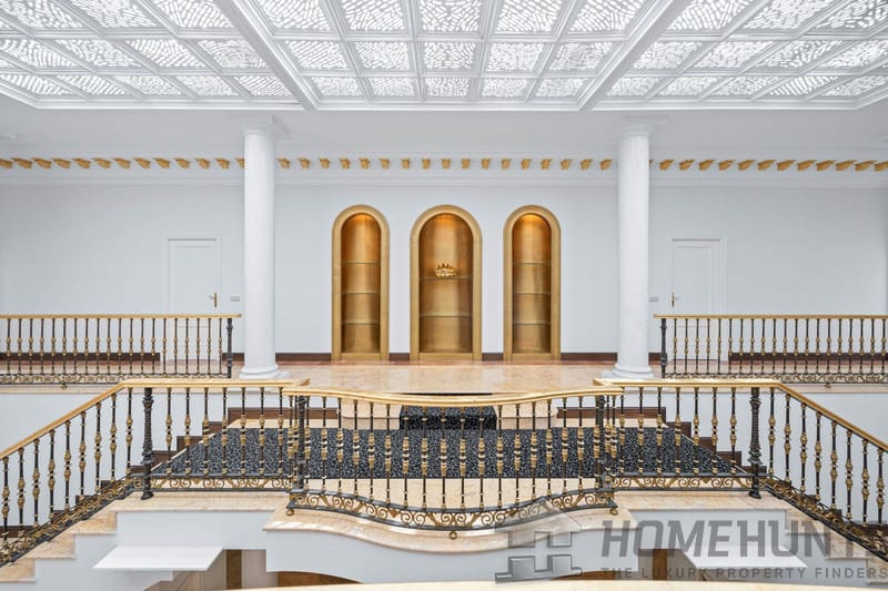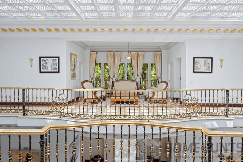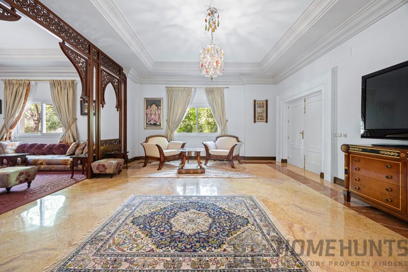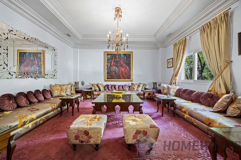 The estate sits on over 4,000 square metres of private grounds, and offers more than 1.500 square metres of interior space laid out across three levels. The main floor is designed for entertaining, with generous reception rooms, elegant ceilings, and natural light pouring in through large windows that open to the terraces and garden beyond.