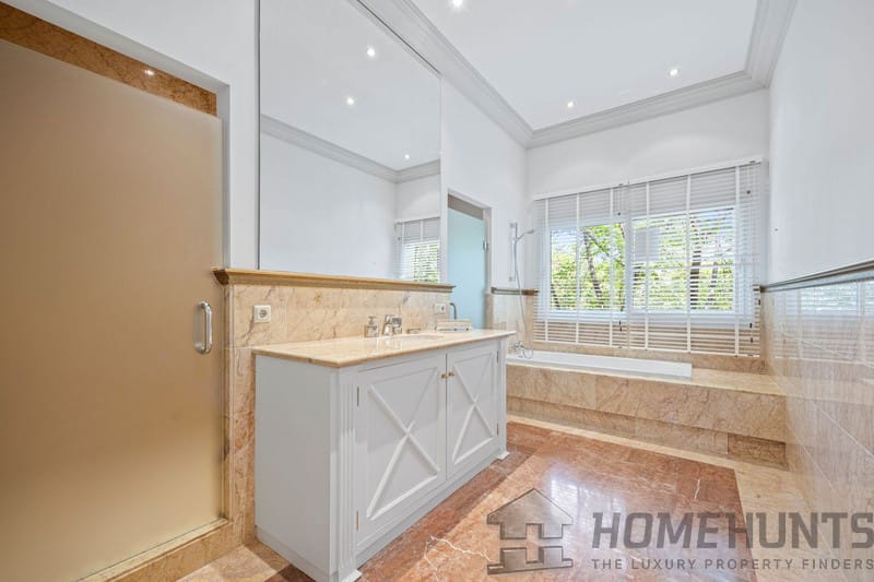Tucked away in one of Marbella’s most discreet and sought-after residential areas, this timeless estate blends classical European elegance with the calm of lush, mature gardens. Just a few minutes from the heart of town and landmarks like Puente Romano Resort and the Marbella Club Hotel, it offers a rare mix of seclusion and convenience.