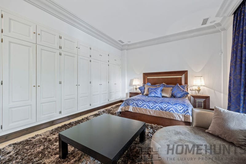 On the lower level, there’s a full wellness area with a gym, yoga room, sauna, steam bath, and massage room, a quiet retreat at the heart of the home, and a separate staff quarters with four bedrooms.