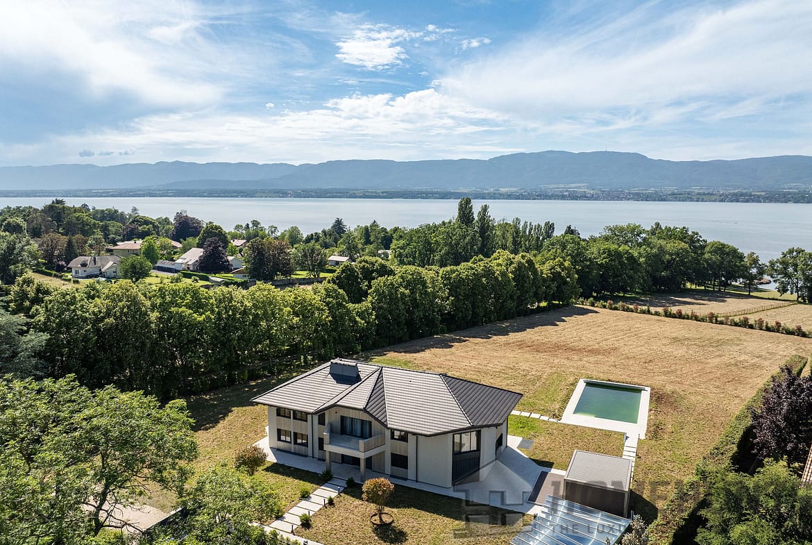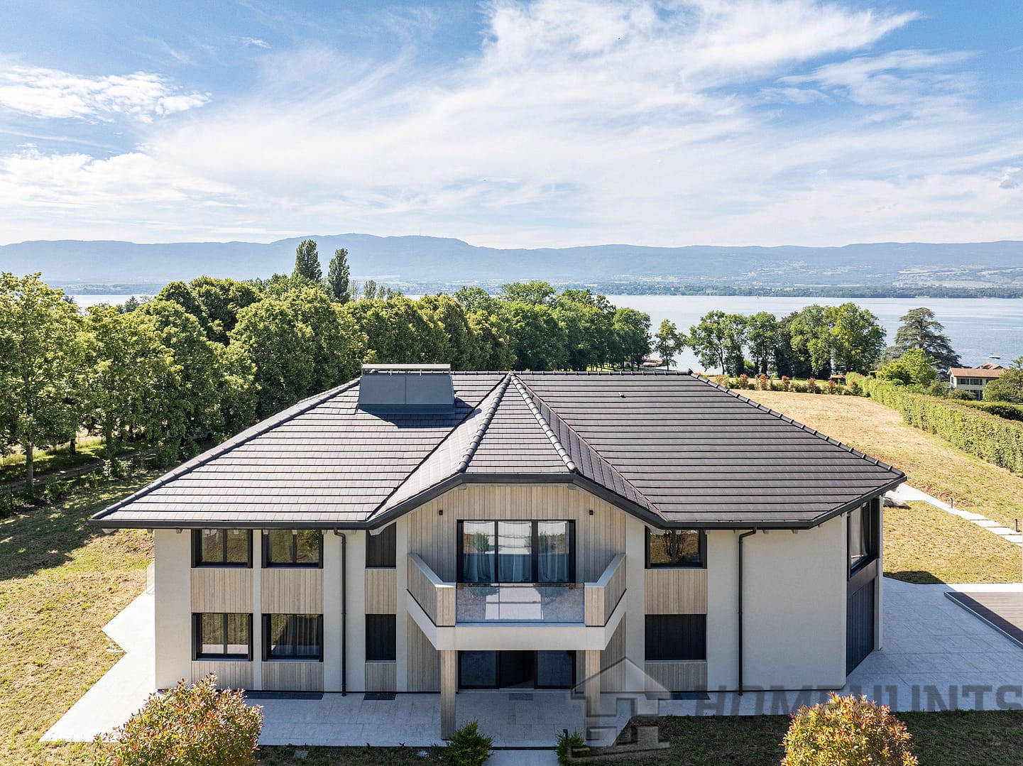 This grand estate of about 10.616 m2 with stunning views on the lake, of the Swiss Jura comes equipped with a main house of approximately 800 m2.