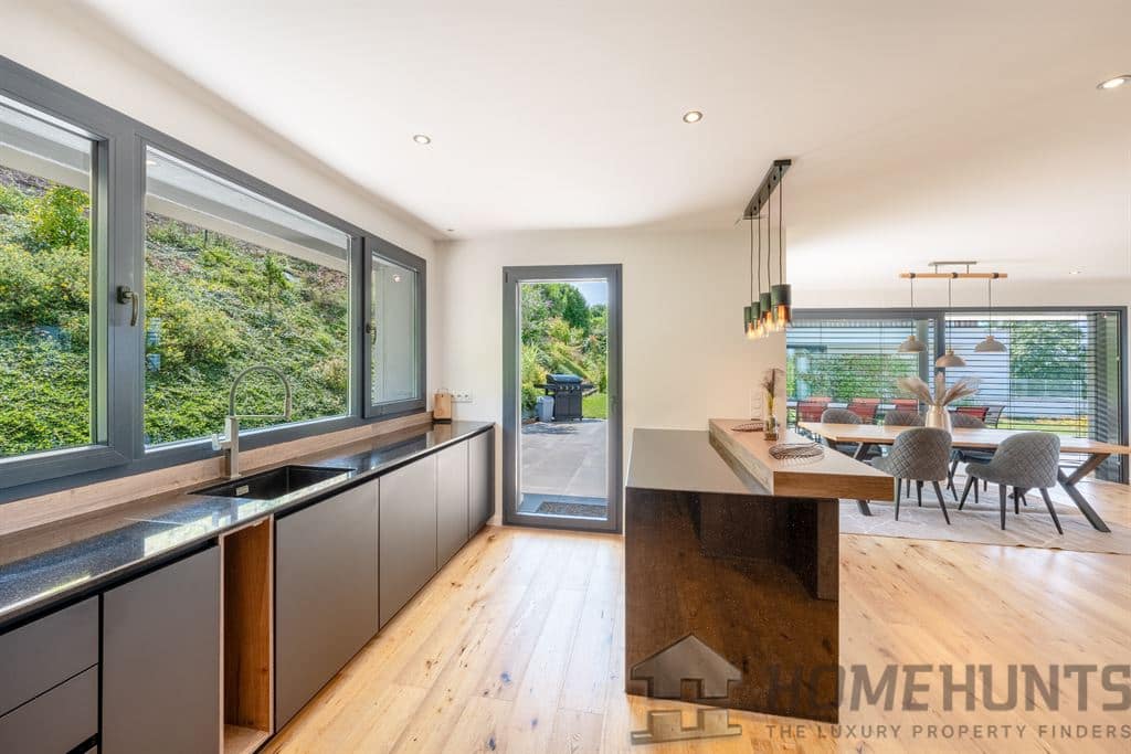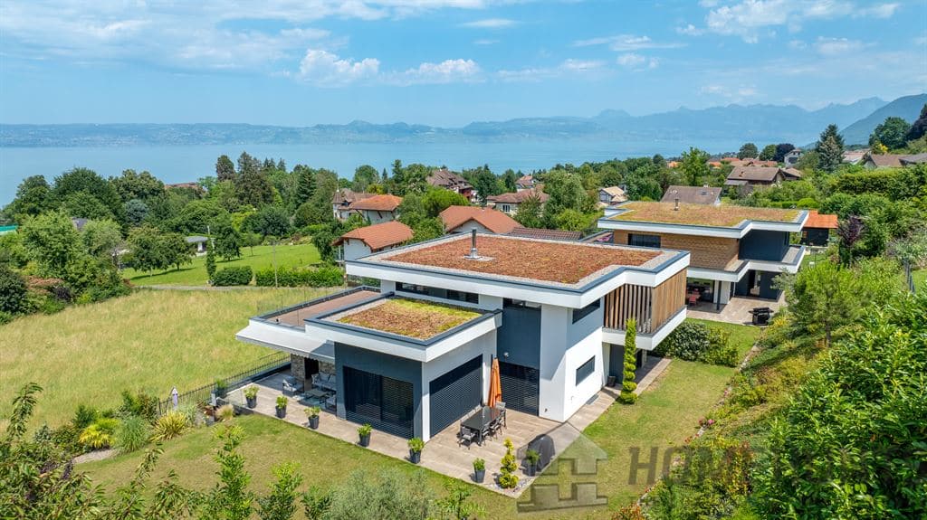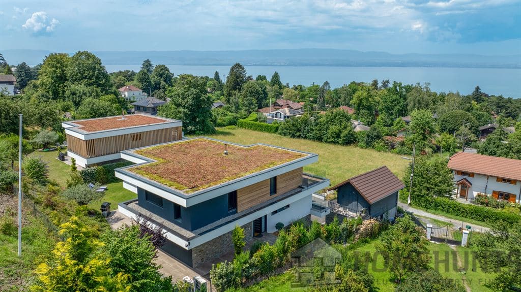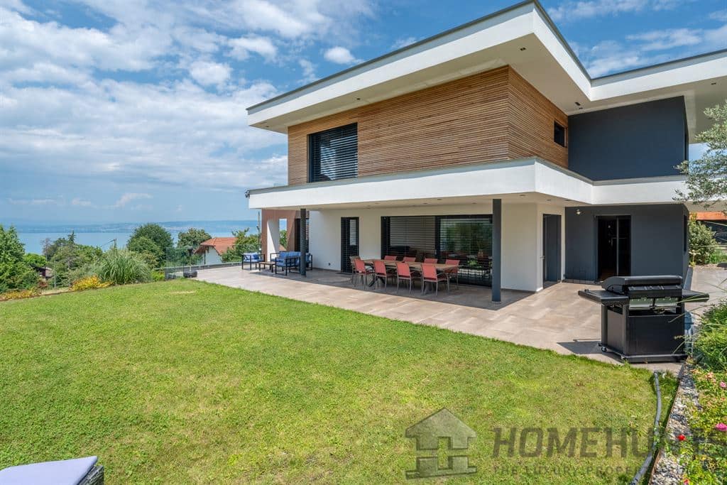 A contemporary villa of 276 m2 of living space on a 953 m2 plot with lake views, plus a two-room chalet-style annex.