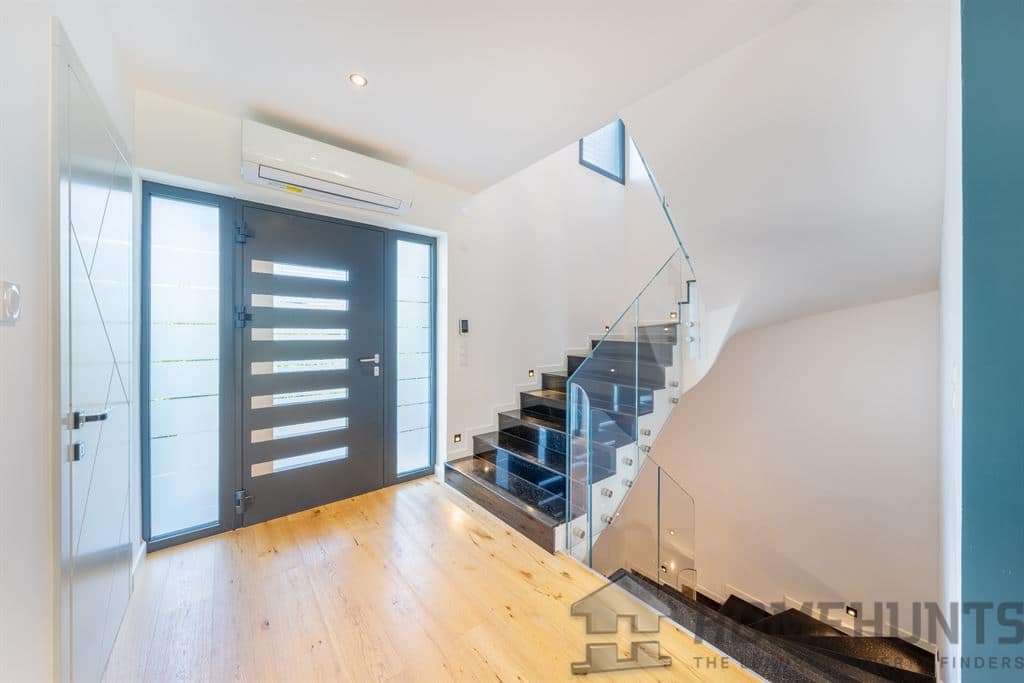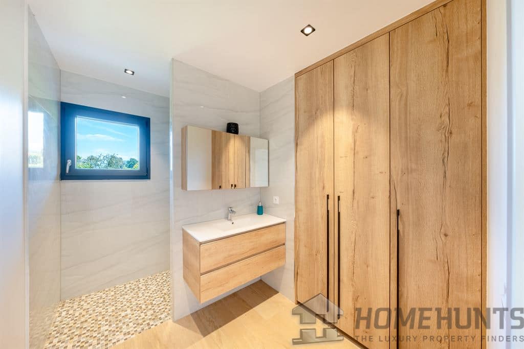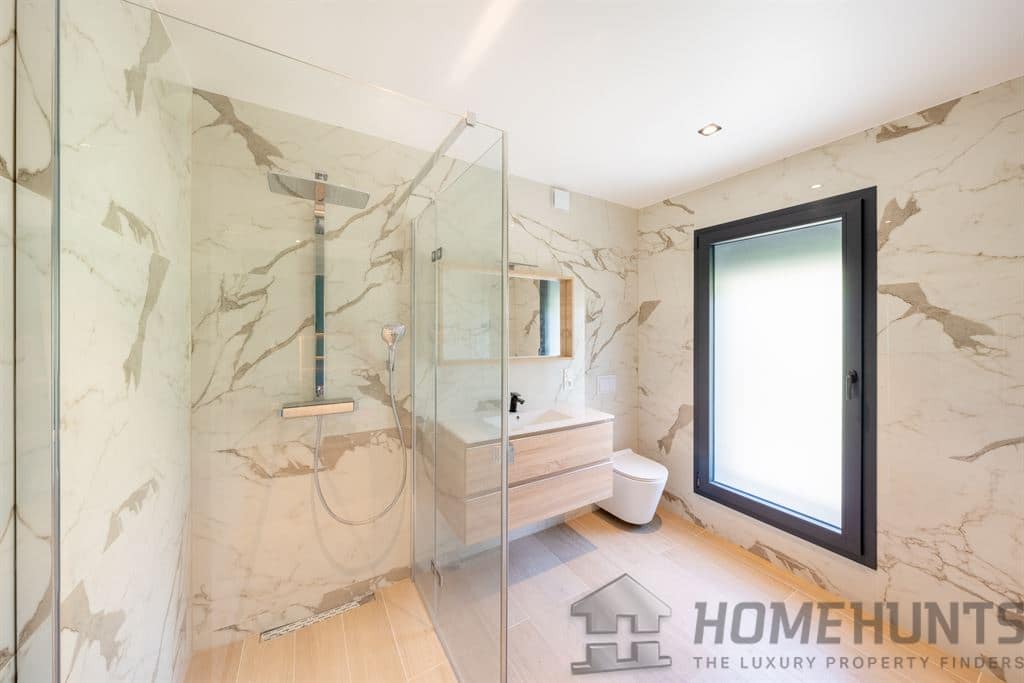 High-quality features include a heat pump (underfloor heating), integrated home automation, and adjustable sunshades.