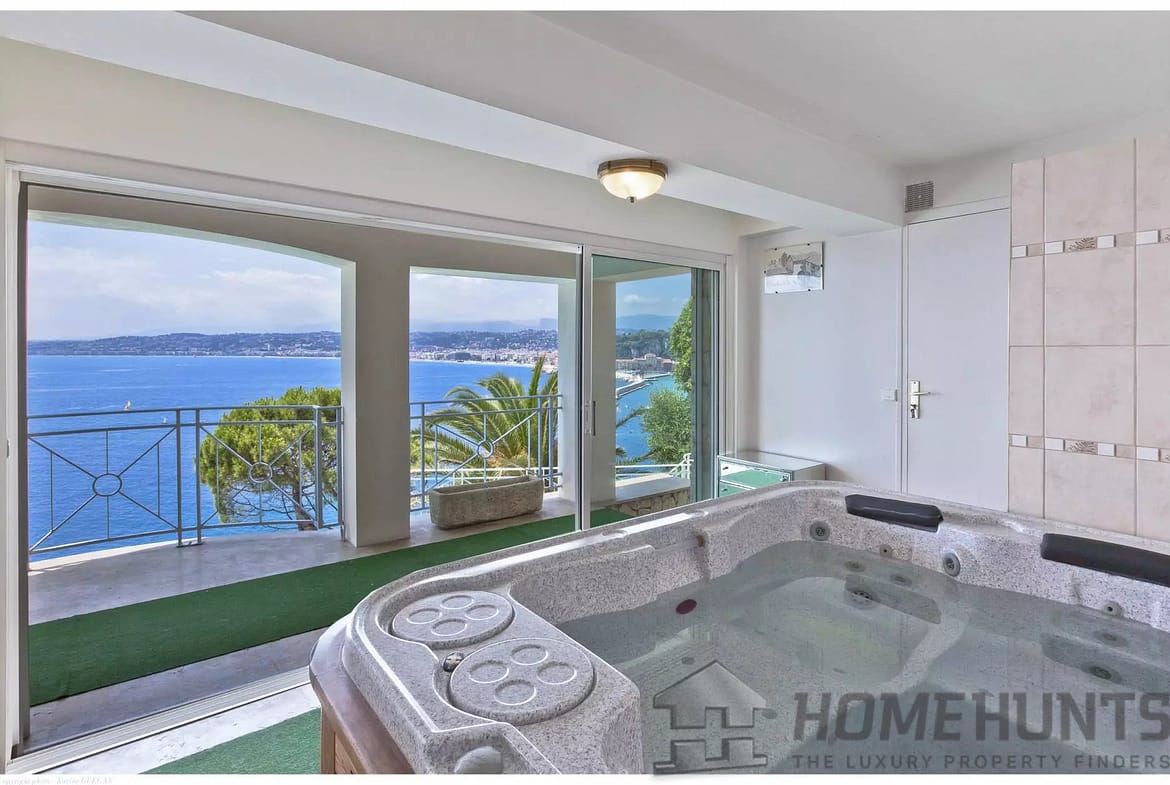 Breathtaking sea view over the Bay of Angels for this beautiful fully renovated Art Deco villa, with a living area of 320 m2 laid out on 3 levels served by an elevator.