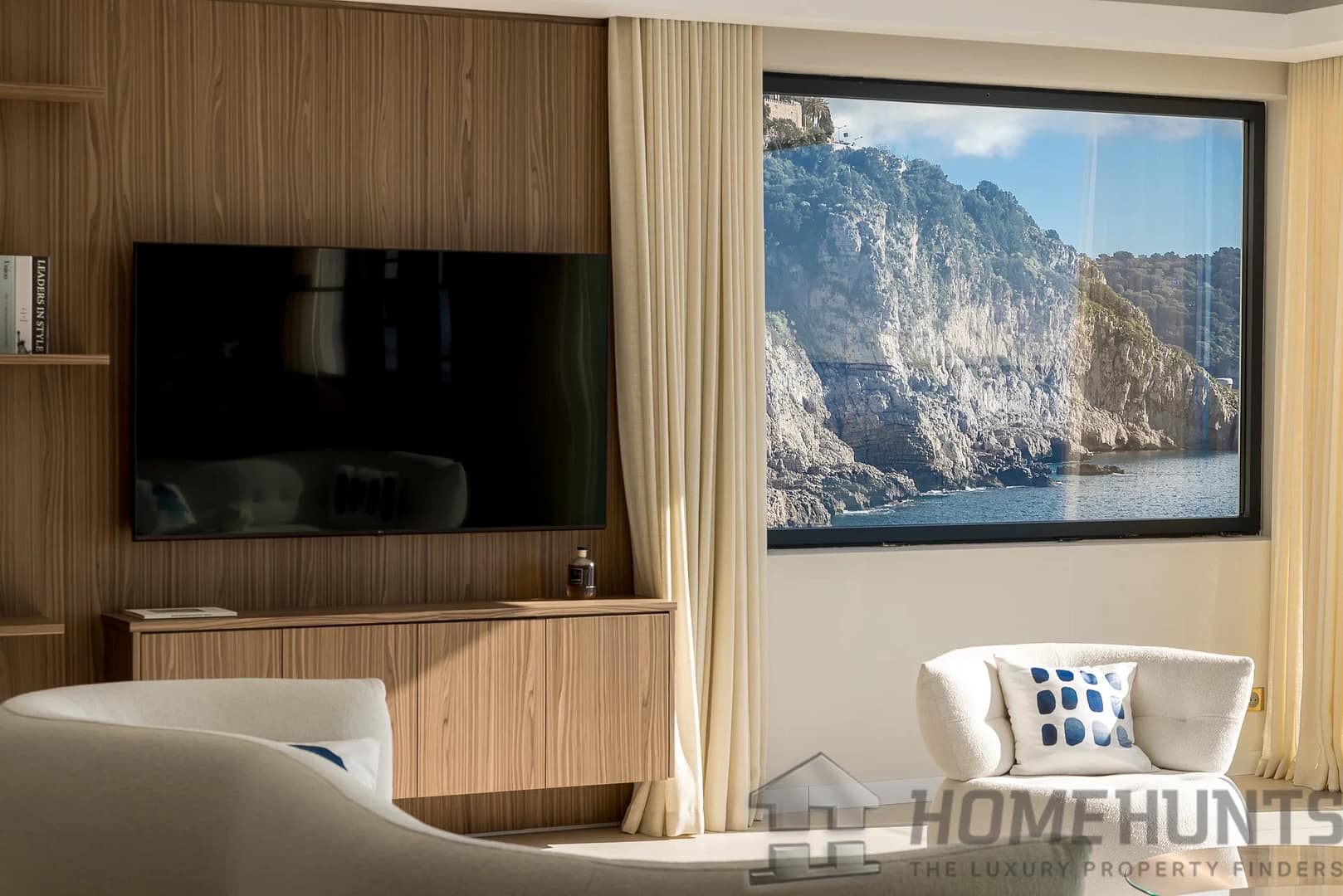 Enjoy relaxing moments by the pool, surrounded by a lush garden, and an outdoor American kitchen. The large bay windows flood the living spaces with natural light while offering an exceptional sea panorama.