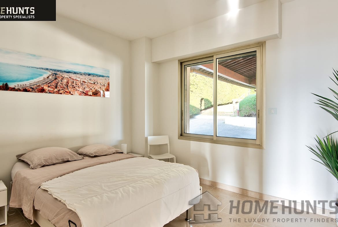 NICE – CREMAT : Nestled in a quiet, privileged setting, this superb property of 300 sqm boasts a commanding view of the hills, the sea and Cap d’Antibes.