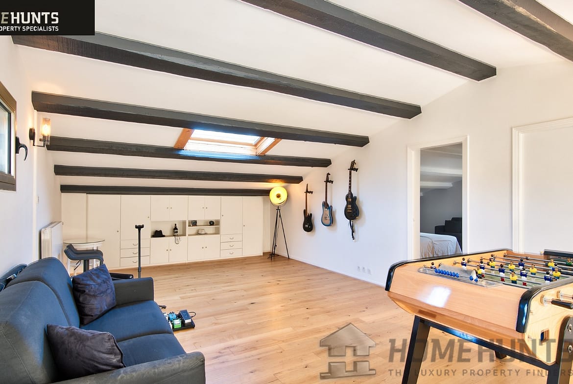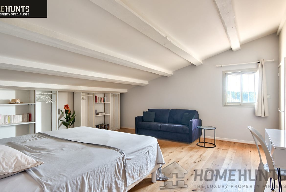 Set on a vast, landscaped plot of 7,600 m2 with south-west exposure, it consists of two spacious apartments of 120 m2 and 180 m2, which can easily be combined to create a single, large villa. Large bay windows open onto deep, light-filled terraces.