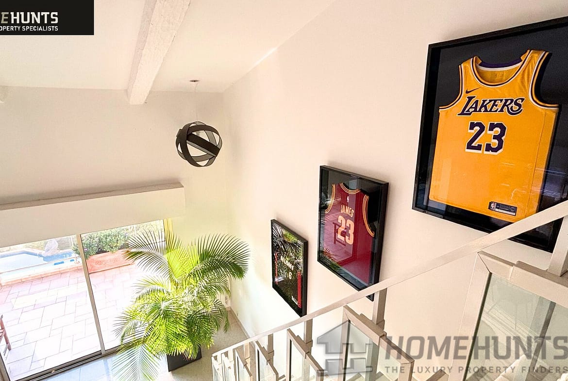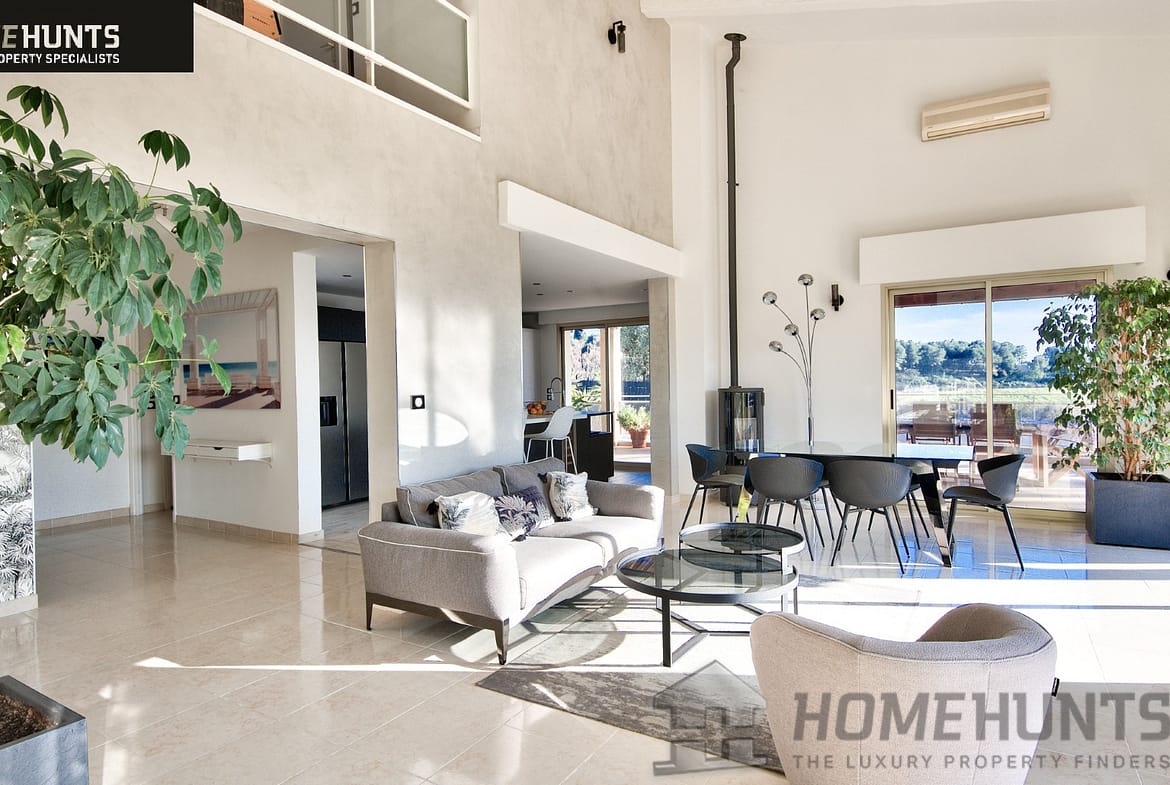 Outside, a magnificent Mediterranean garden features a 15-meter swimming pool, a variety of relaxation and play areas, and ample parking, including covered parking and a garage.