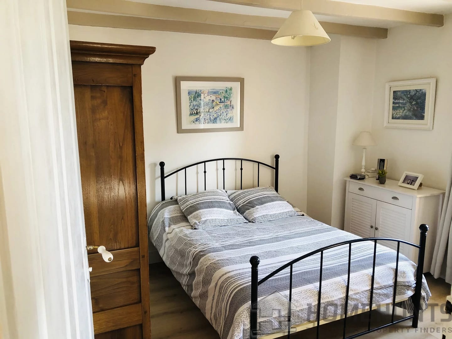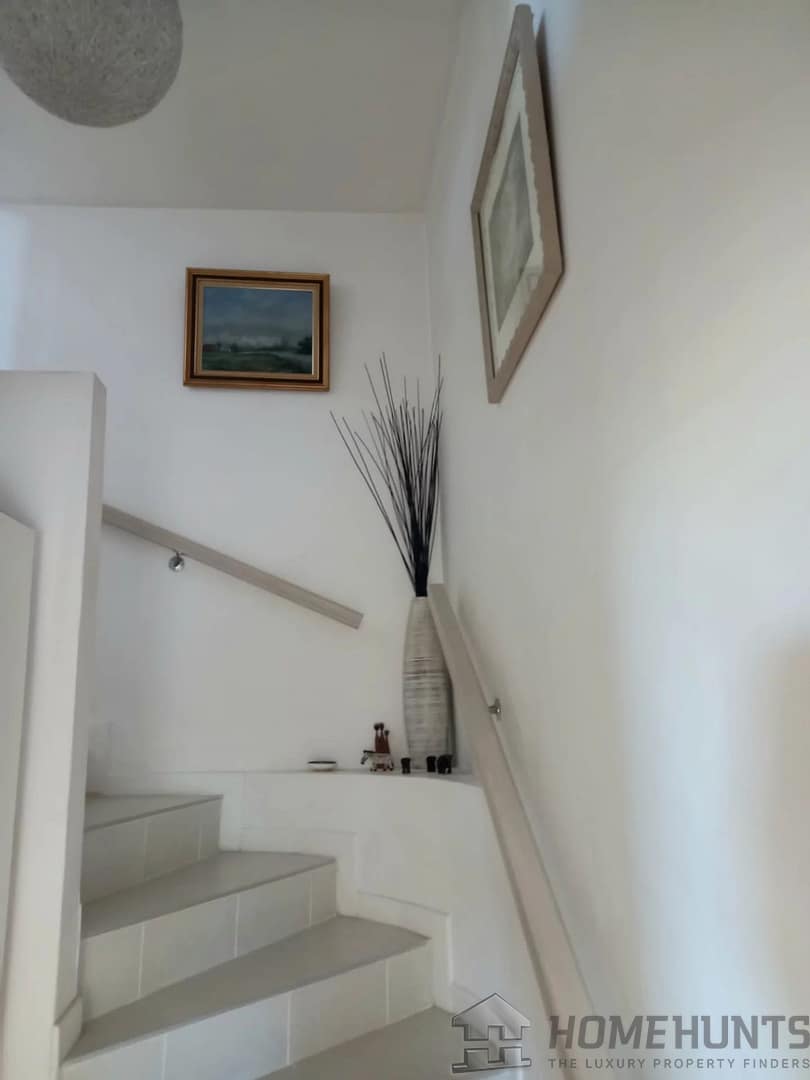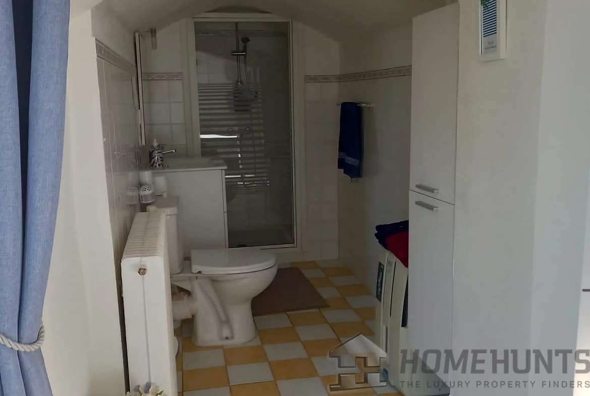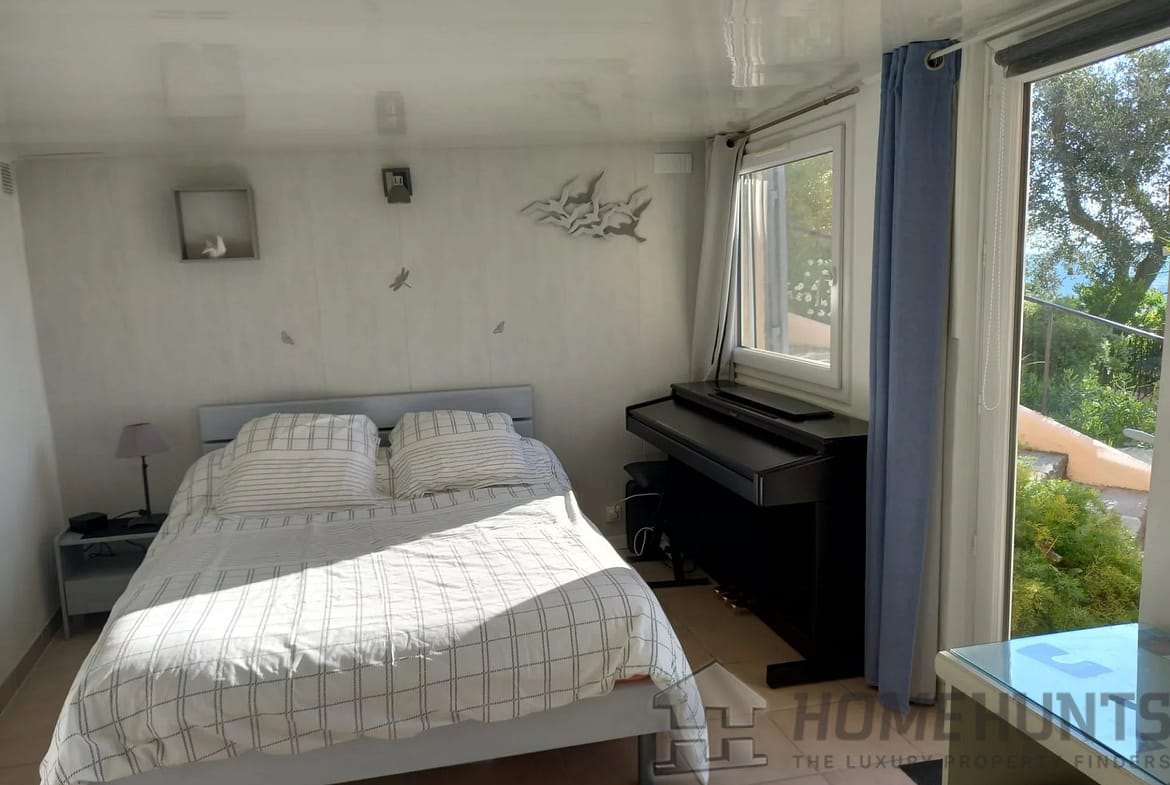 Upstairs, two beautiful bedrooms, a spacious bathroom, all with lovely views of the sea and hills, and storage space.