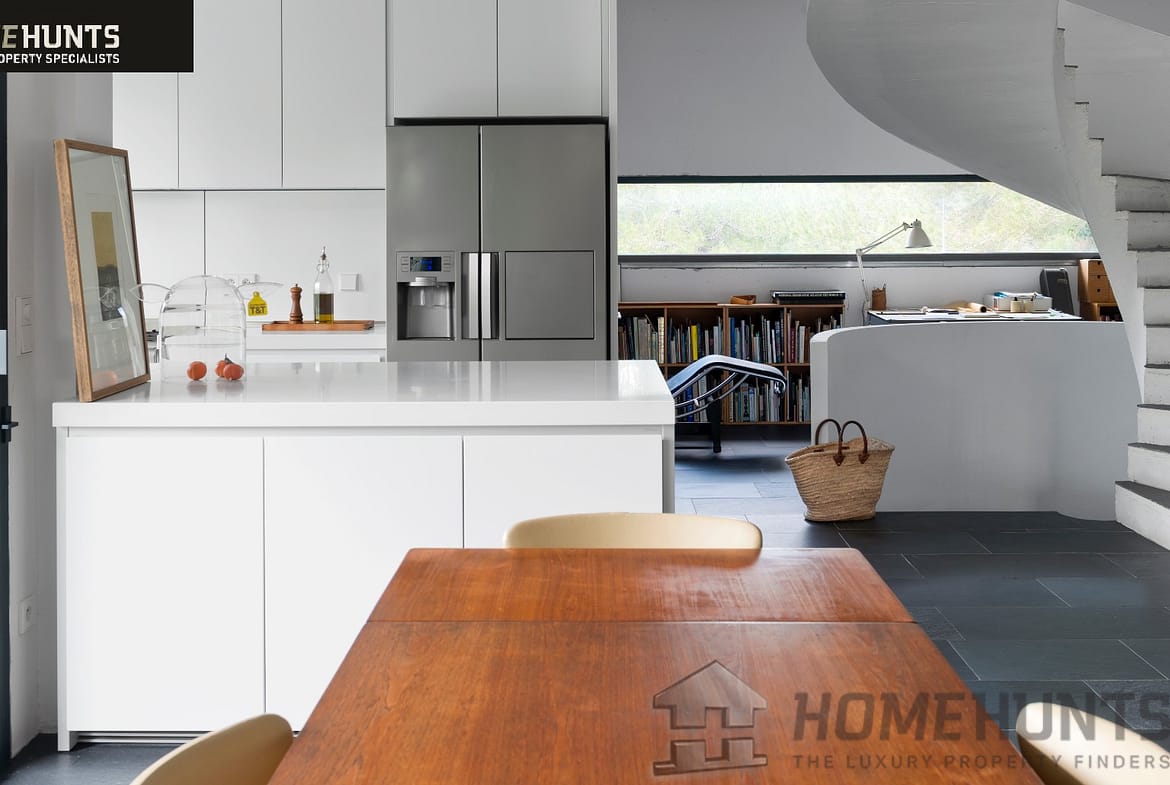 – Vast 103 m2 open-plan living space with lounge, dining area, fully fitted kitchen, and a bespoke office nook