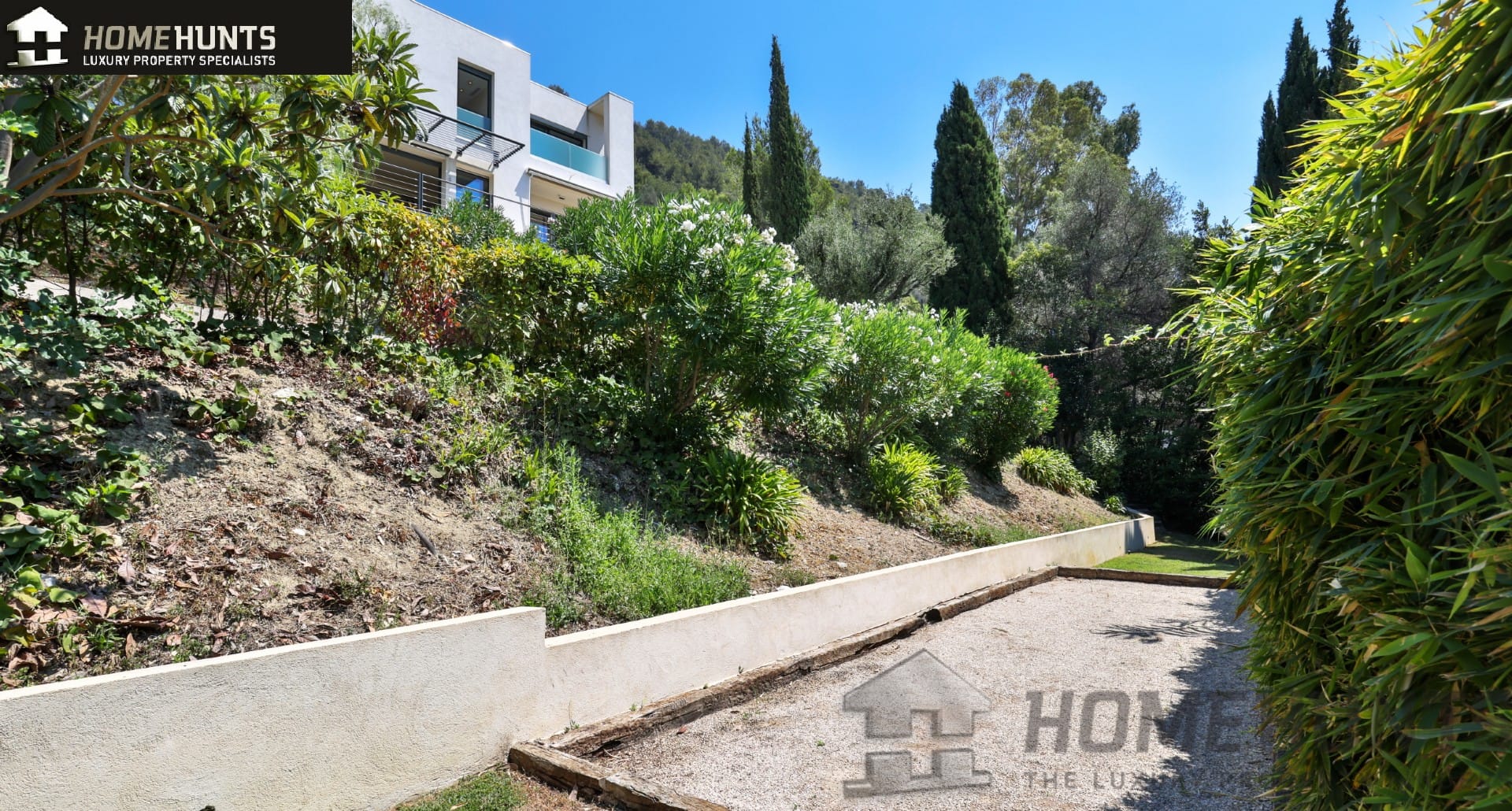 Set on approximately 1,700 m2 of landscaped wooded grounds, the property combines elegance, privacy, and a true Riviera lifestyle, enhanced by a heated infinity pool with pool house and a private bowling alley.