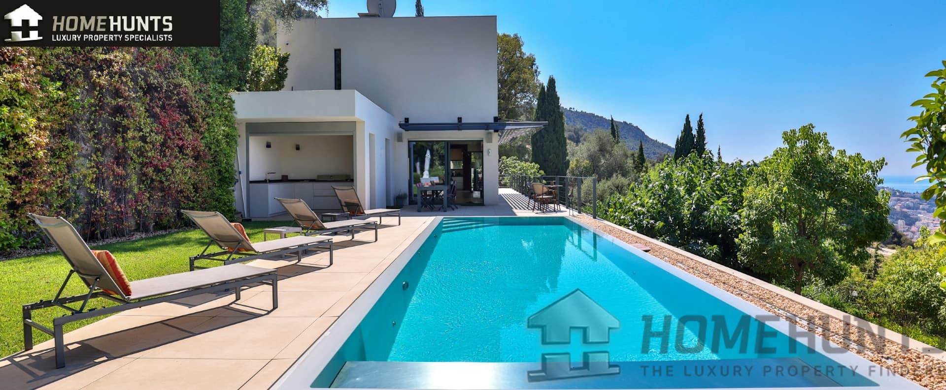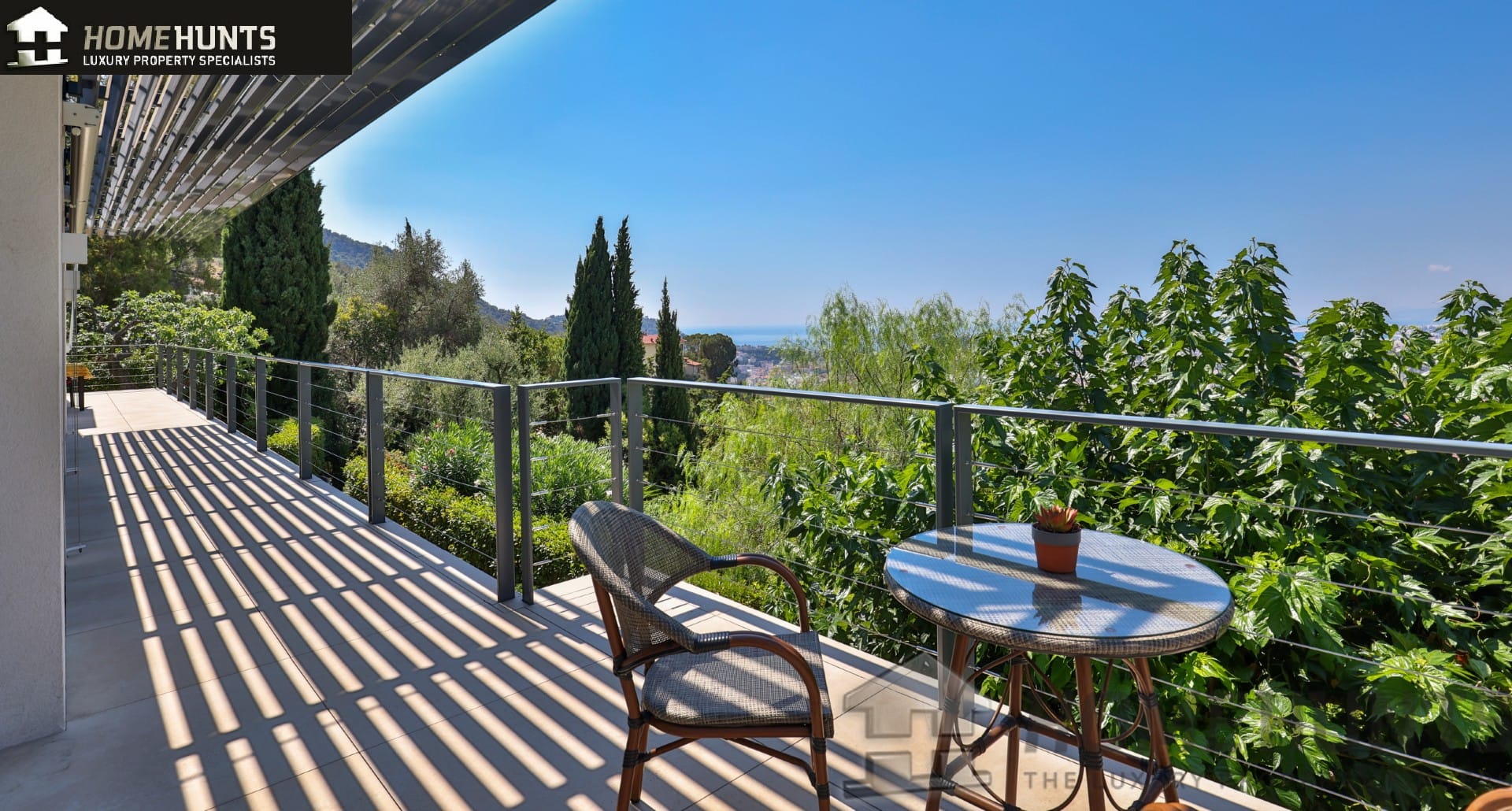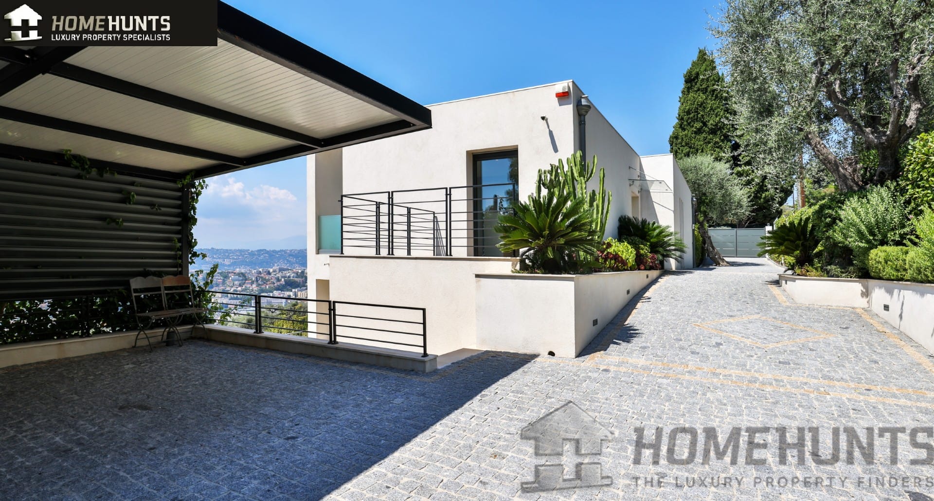 Perched on the heights of Nice in the sought-after Grande Corniche / Vinaigrier district, this superb villa has been fully renovated with luxurious finishes and offers a breathtaking panoramic view over the Baie des Anges.