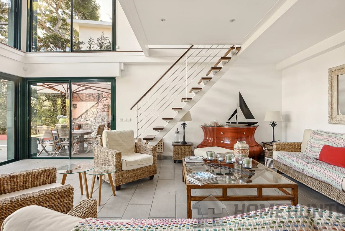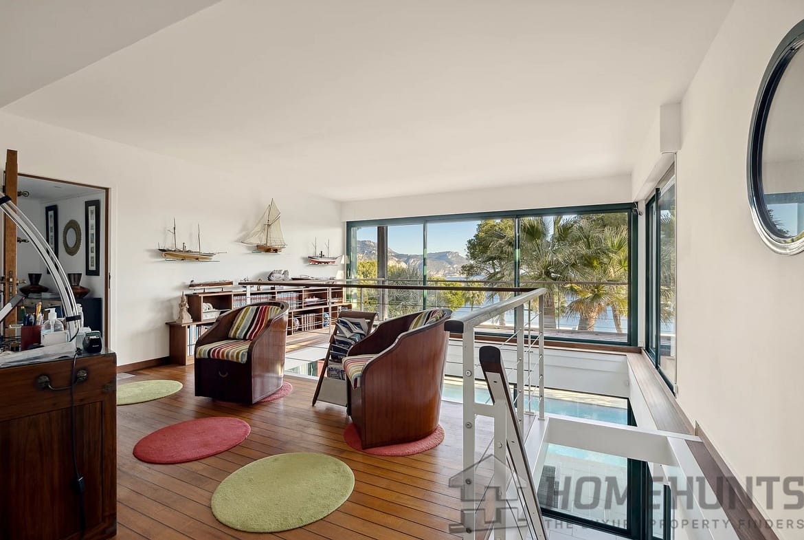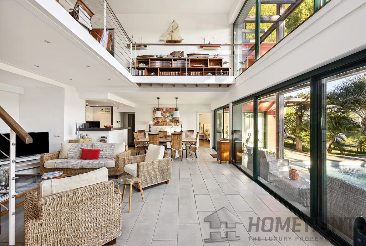 From the moment you enter, you can tell that this villa has been designed to offer the best in terms of comfort and modernity. The spacious living/dining room is bathed in natural light thanks to the large windows that open onto a teak terrace. This terrace is perfect for relaxing by the pool and enjoying the exceptional view of the Mediterranean Sea.