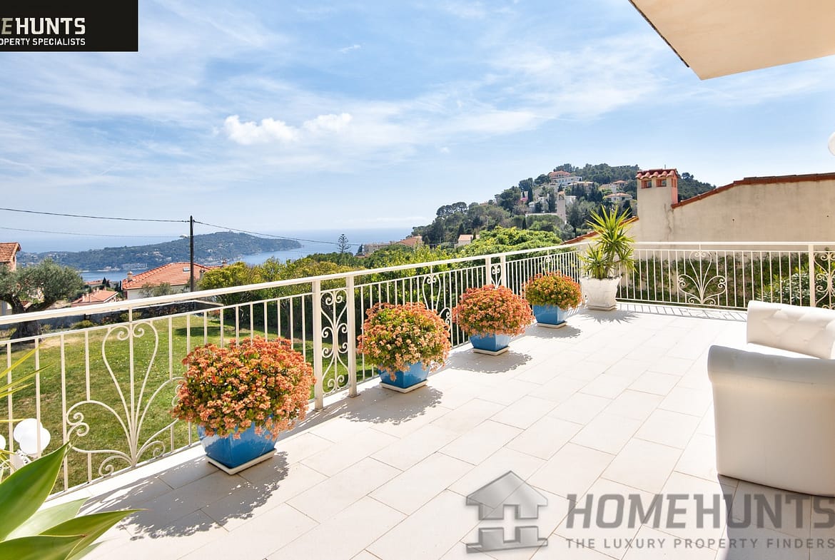 On the first floor, two bedrooms, one en suite with bathroom and toilet opening onto a second terrace and enjoying a superb view of the bay of Villefranche and Cap Ferrat.
