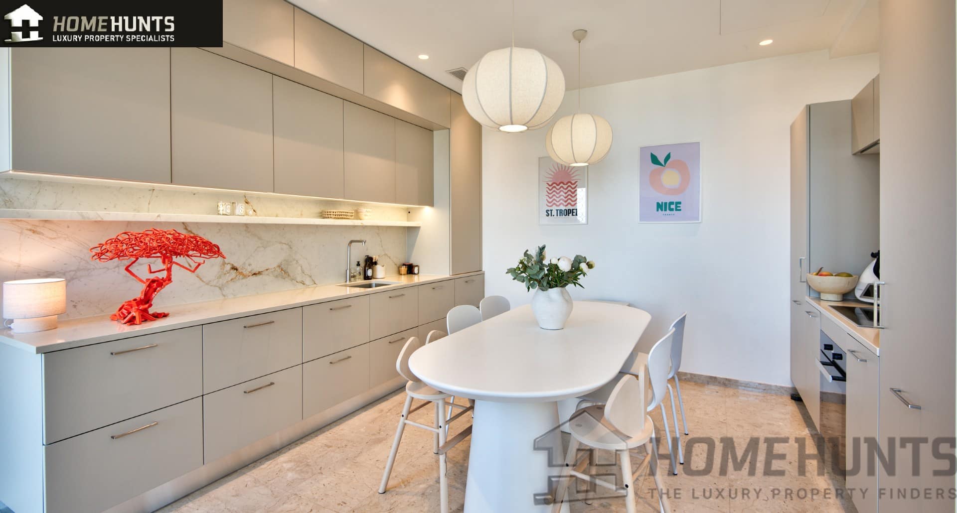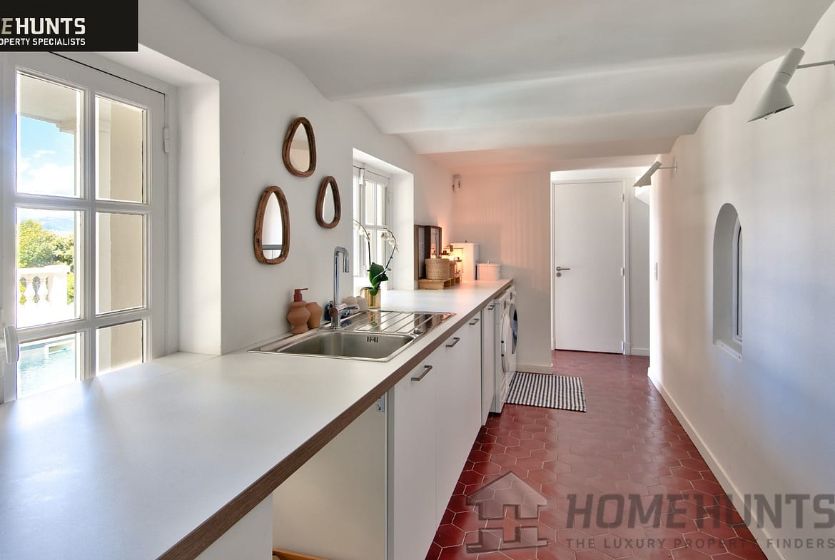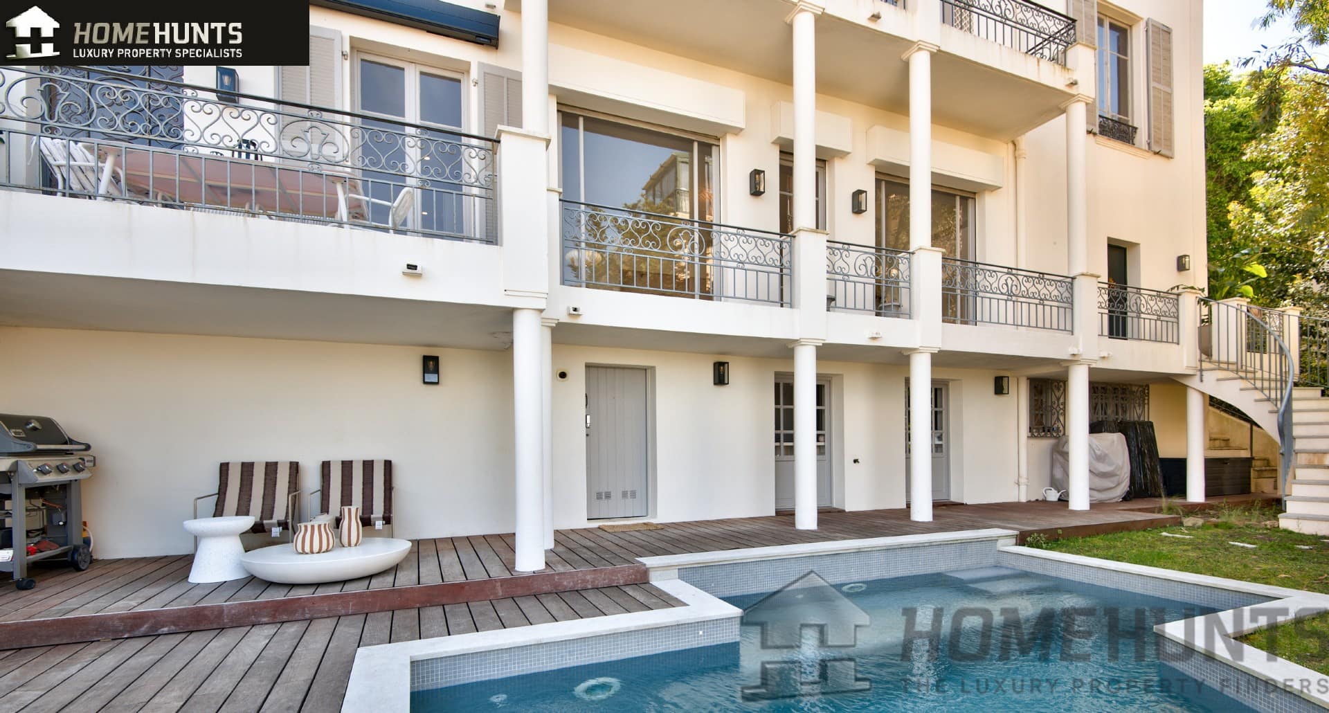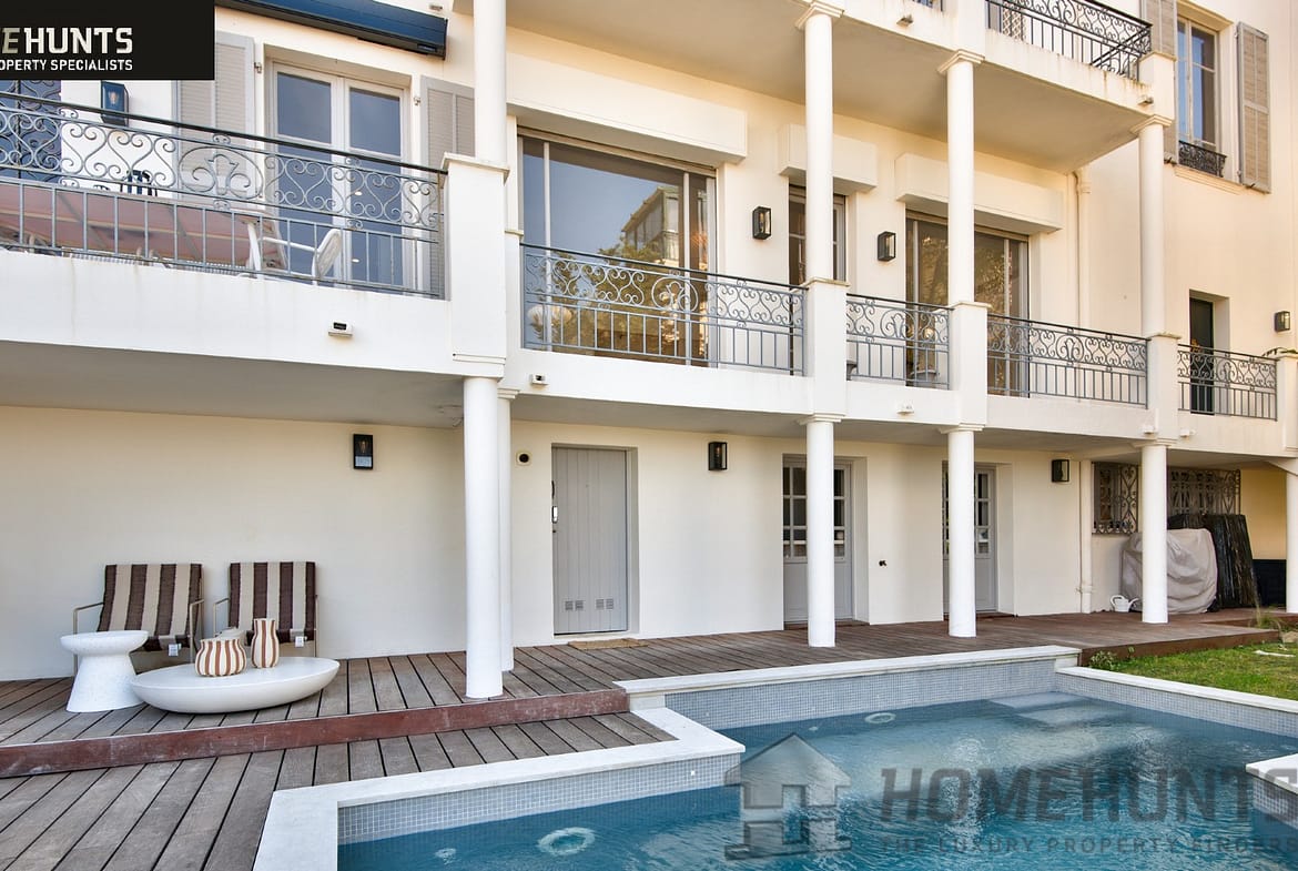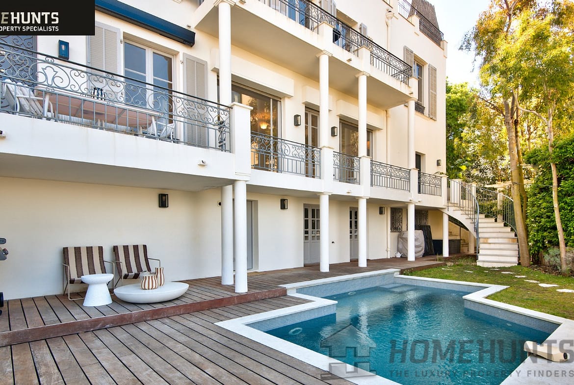 The beautifully designed outdoor spaces include a sun-soaked swimming pool and terraces that invite relaxation with a Riviera breeze and postcard-perfect views.