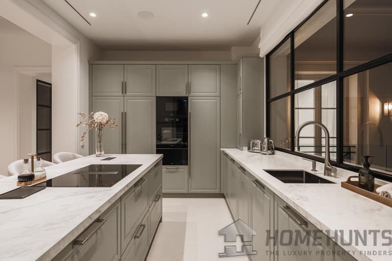 Attention to detail defines this property, with its design under the guidance of a renowned architect ensuring that the villa seamlessly integrates timeless classical elements with contemporary amenities. The villa is equipped with prestigious features, including a state-of-the-art alarm system, an elegantly designed barbeque area, and a relaxing sauna, providing a cohesive combination of security, luxury, and comfort.