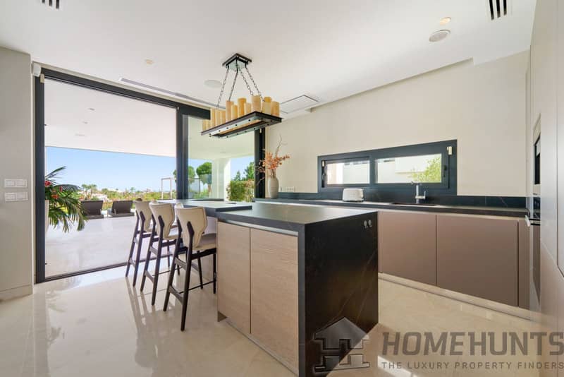 Spread across three levels, the villa offers six luxurious bedrooms and eight bathrooms, including a master suite with a private terrace and spa-inspired bathroom. The interiors feature a spacious open-plan living area, a designer kitchen with sleek finishes, and a dining space perfect for entertaining. A private home gym, wine bodega, and elegant lounge areas elevate the lifestyle experience, ensuring comfort and sophistication at every turn.