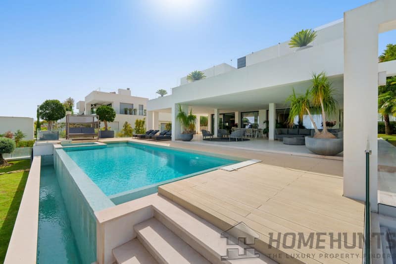 Introducing your new home, a striking contemporary villa in the heart of Nueva Andalucía, enjoying a privileged frontline golf position. With clean architectural lines, expansive terraces, and floor-to-ceiling windows, this home is designed to maximize natural light and uninterrupted views of the fairways, offering a seamless blend of indoor and outdoor living.