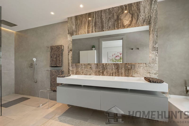 On the first floor you have 3 bedroom ensuite, all with access to a covered terrace. From here you have stairs leading onto the solarium which has been fitted with solar panels yet leaving space to create an entertaining space. In the basement floor floor you have the laundry area, a 2nd guest toilet, a bedroom suite, a large room that could be used as a cinema room etc and lastly a large garage for up to 4 cars. All floors are accessed by stairs or an elevator.