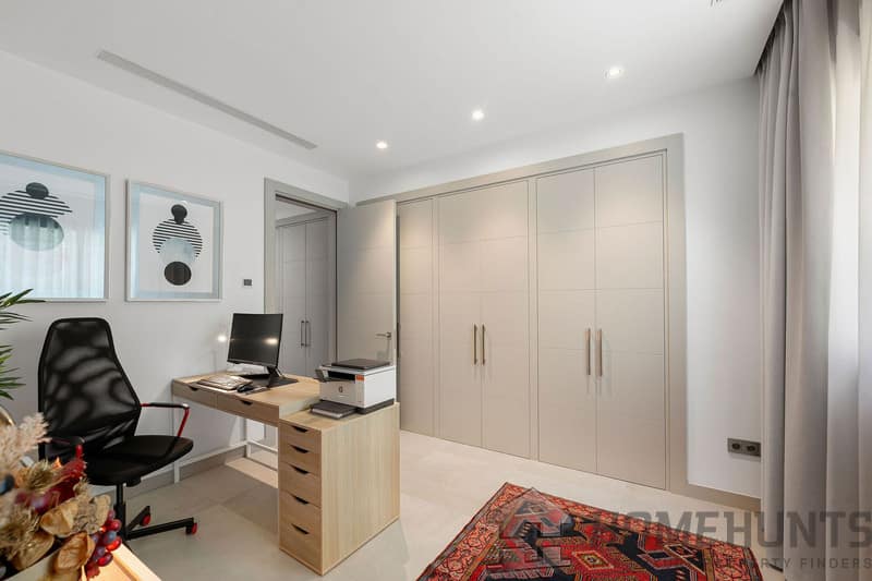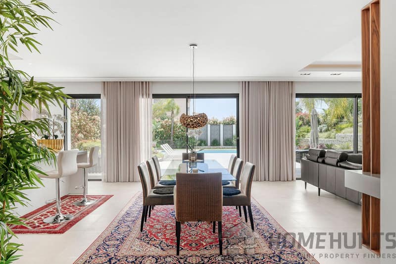 As you enter you are greeted with a large open kitchen that leads to the dining and living area, from here you can access the large covered terrace and onto the pool area with ample space for sunbathing and with an outdoor shower. On the main floor you have a bedroom ensuite currently used as an office.