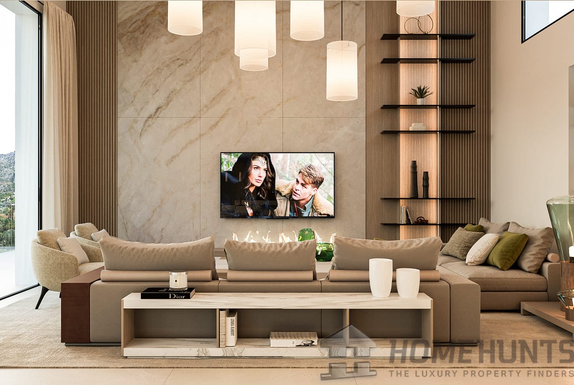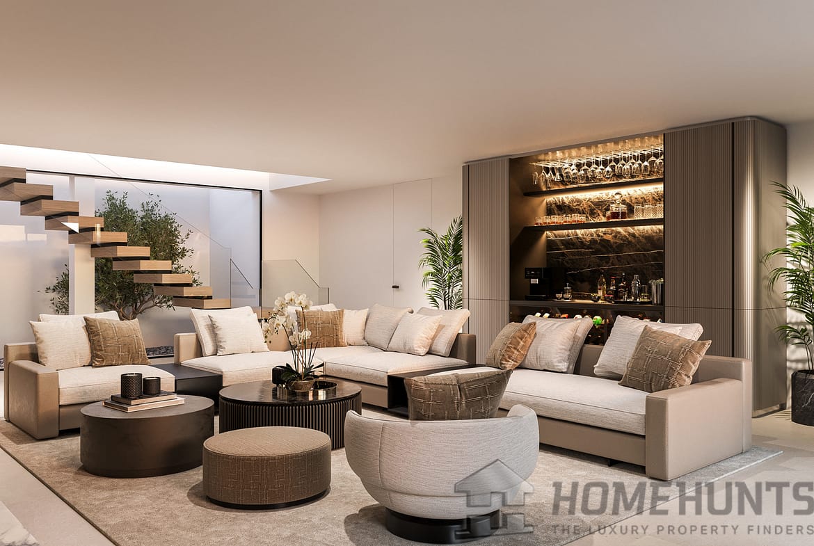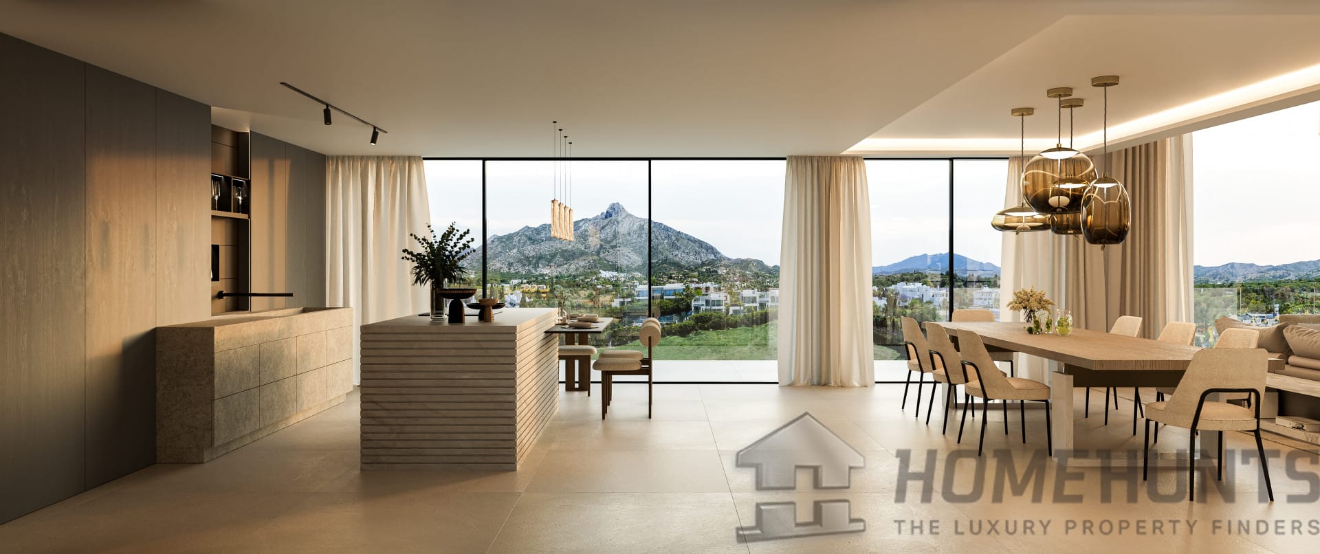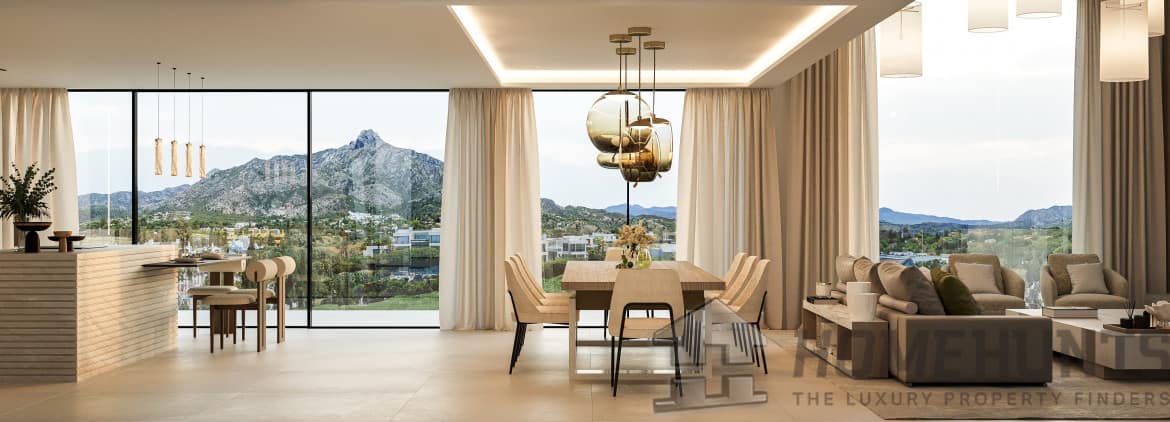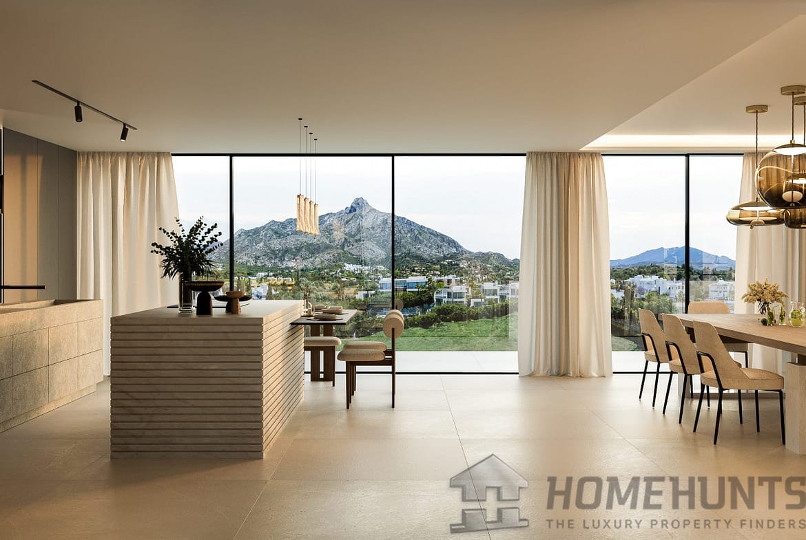 Designed by renowned architects Jesus Estepa Rubio and Antonio Estepa Rubio of ER Arquitectos, and styled by AALTO Exclusive Design, the villa showcases a harmonious fusion of natural stone, sleek glass elements, and clean architectural lines. The open-plan living and dining areas are bathed in natural light, thanks to floor-to-ceiling windows that frame breathtaking views of the surrounding landscapes.