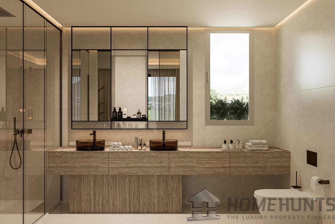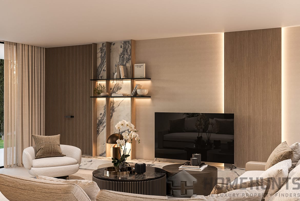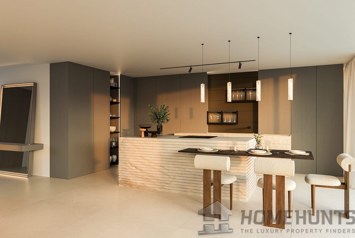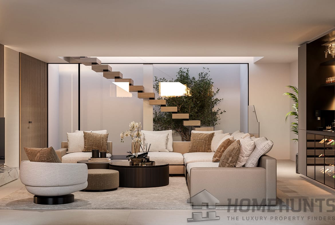 Designed by renowned architects Jesus Estepa Rubio and Antonio Estepa Rubio of ER Arquitectos, and styled by AALTO Exclusive Design, the villa showcases a harmonious fusion of natural stone, sleek glass elements, and clean architectural lines. The open-plan living and dining areas are bathed in natural light, thanks to floor-to-ceiling windows that frame breathtaking views of the surrounding landscapes.