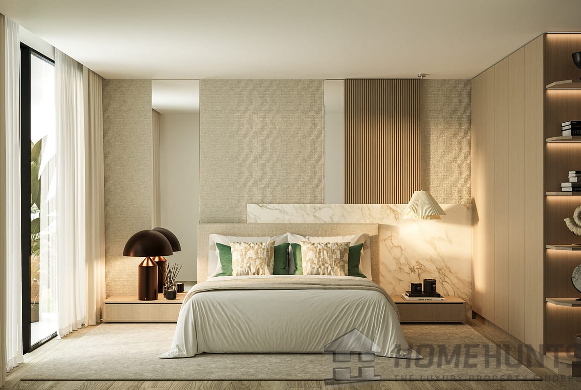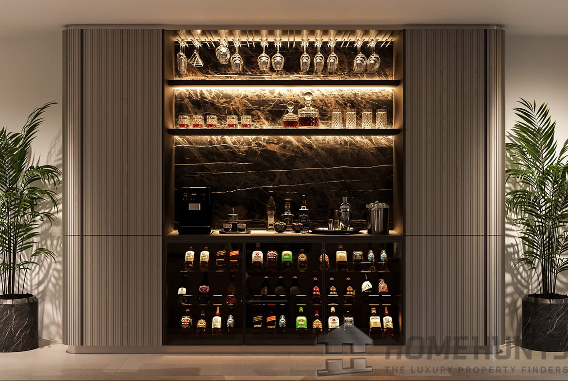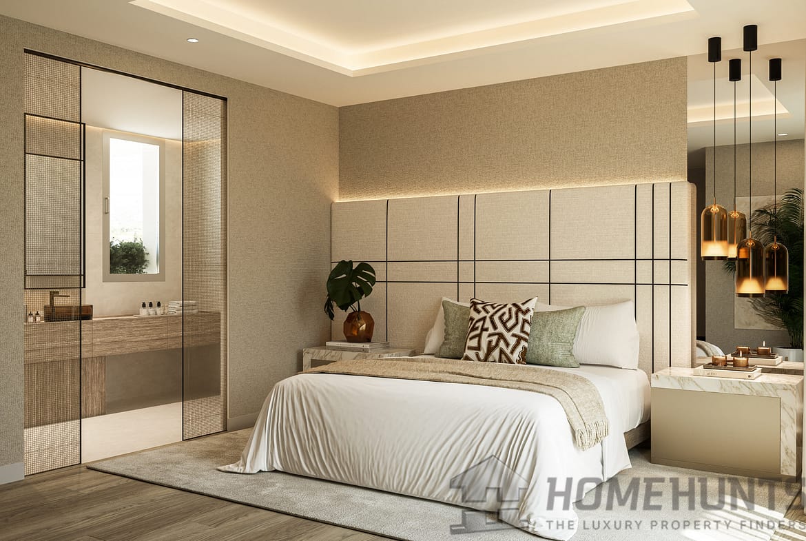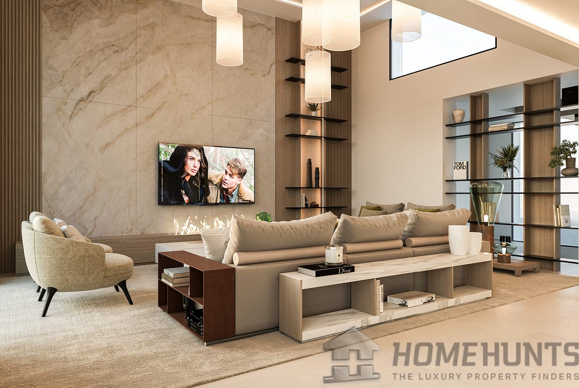 The residence boasts five spacious bedrooms, each with its own luxurious en-suite bathroom. The master suite is a sanctuary of comfort, featuring a private dressing area and panoramic views. The gourmet kitchen is fully equipped with top-of-the-line appliances, ideal for both casual meals and formal entertaining.