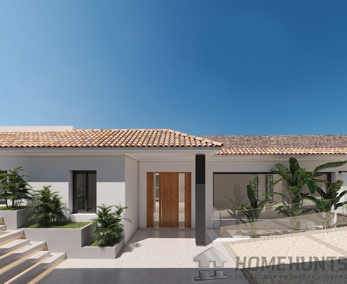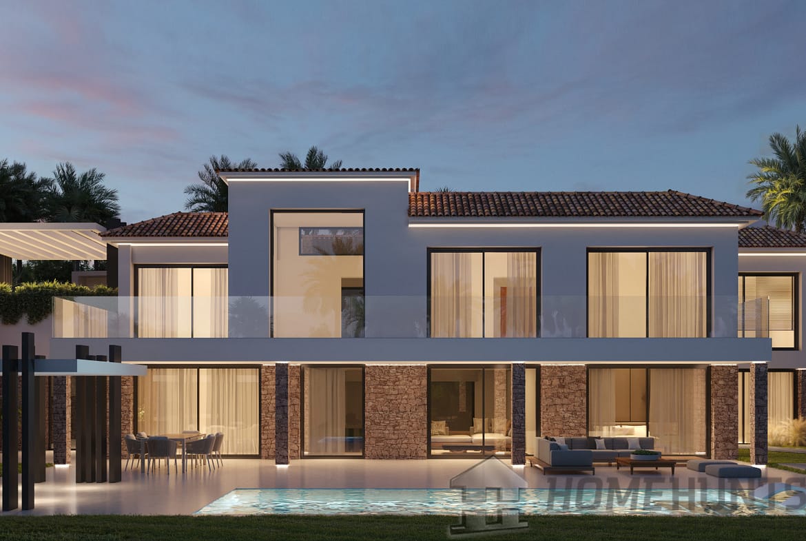 Outdoor living is equally impressive, with expansive terraces, a pergola with adjustable openings, and a private swimming pool surrounded by lush Mediterranean gardens. The villa also includes a fully equipped gym, a stylish bar and lounge area, and a basement designed for versatile use.