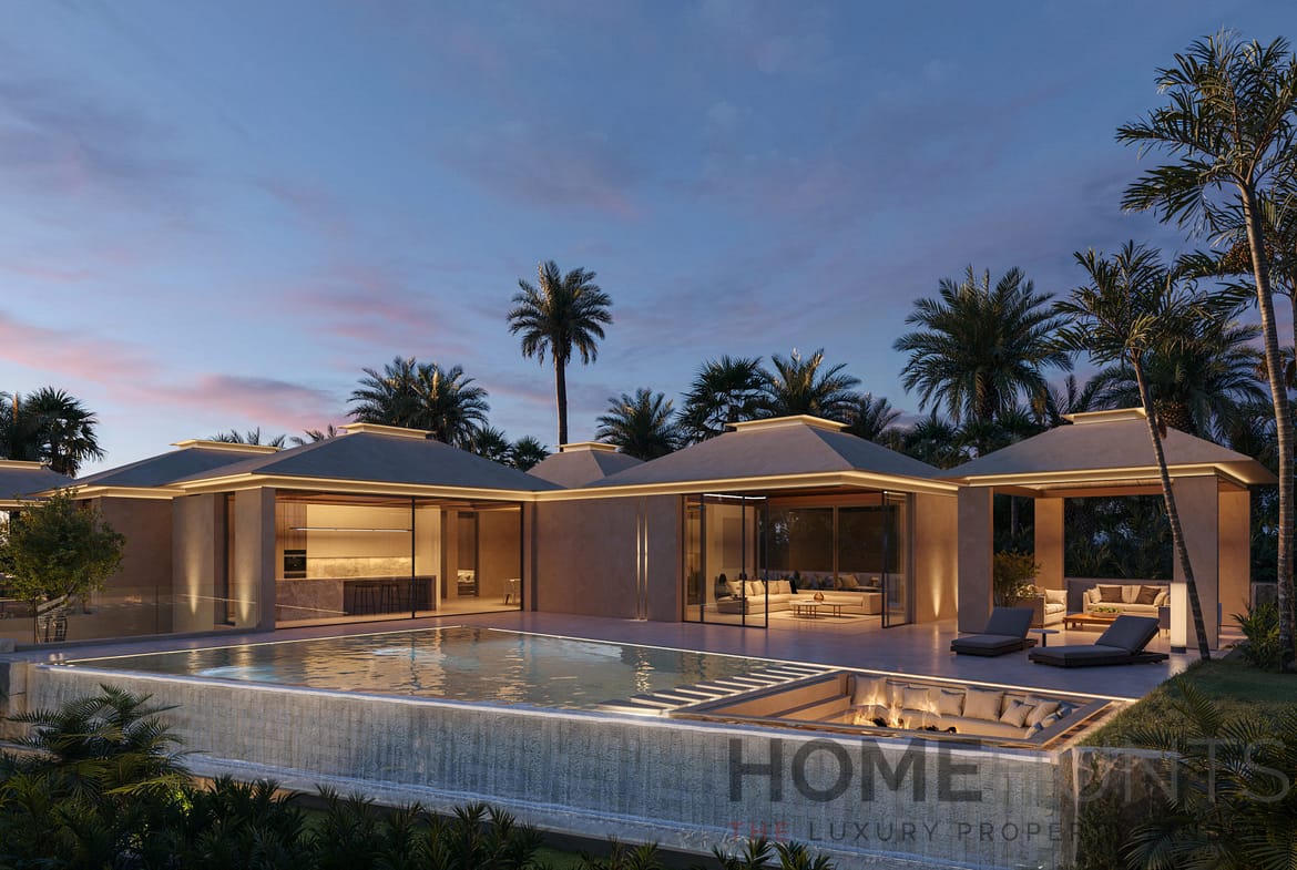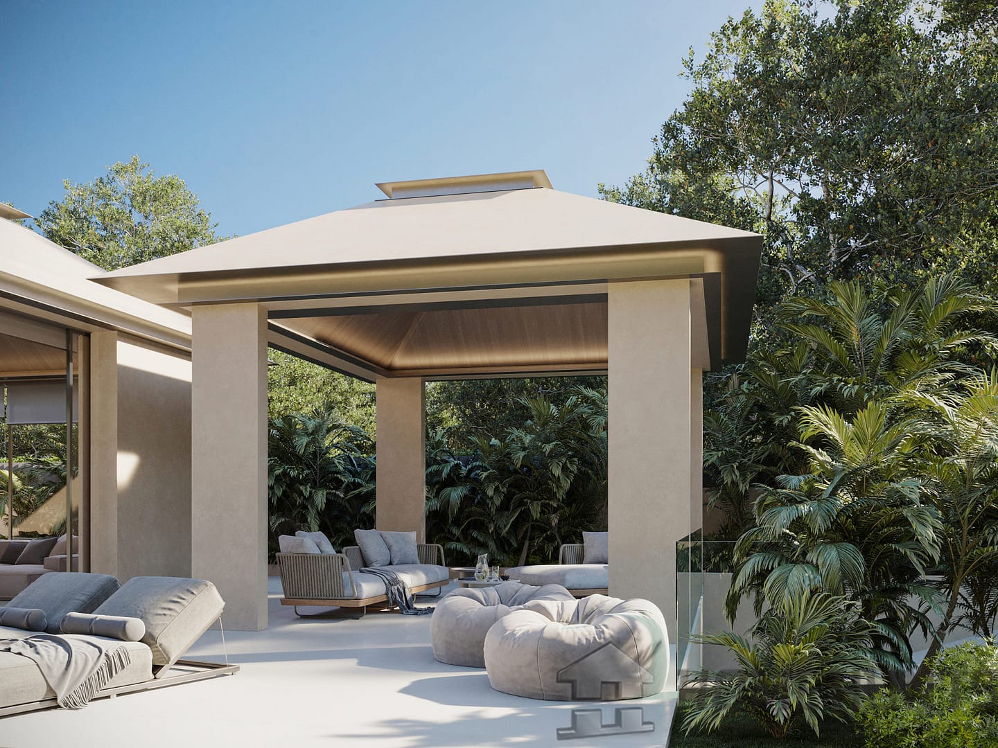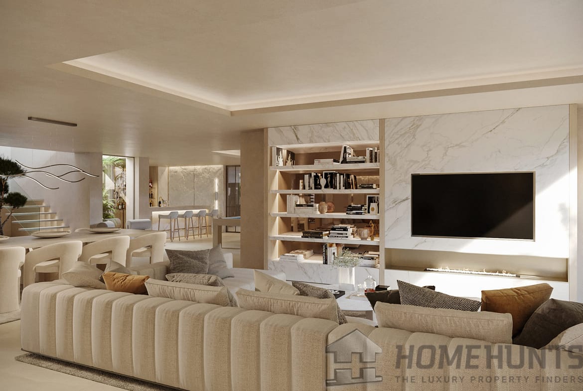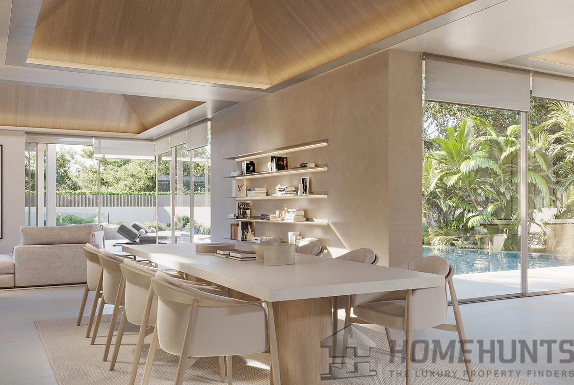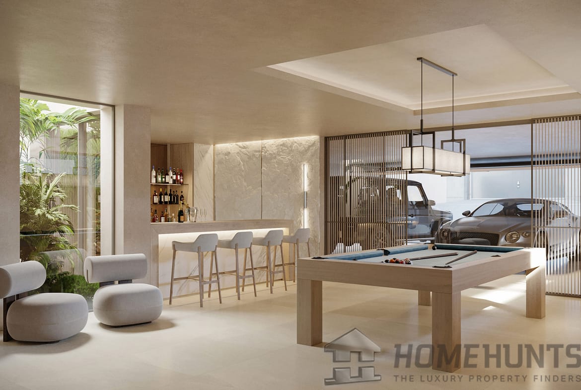 Created by ER Arquitectos and styled by GC Studio, the villa offers a seamless open-plan layout with soaring double-height ceilings and fluid transitions between indoor and outdoor living. It features five spacious bedrooms with en-suite bathrooms, including a stunning master suite with its own designer bathroom, private dressing area. The living spaces are complemented by a state-of-the-art kitchen, an elegant lounge, and a series of social areas that extend effortlessly to the exterior.