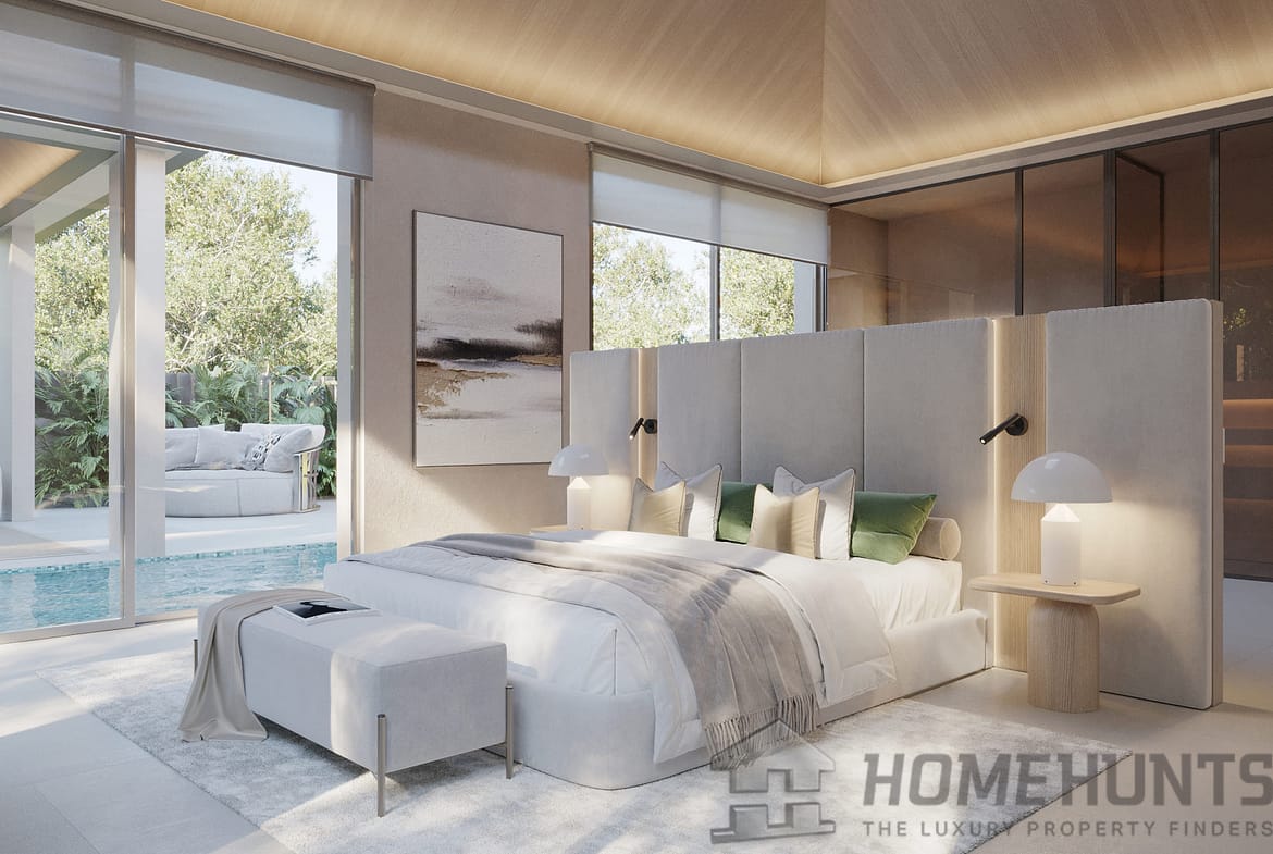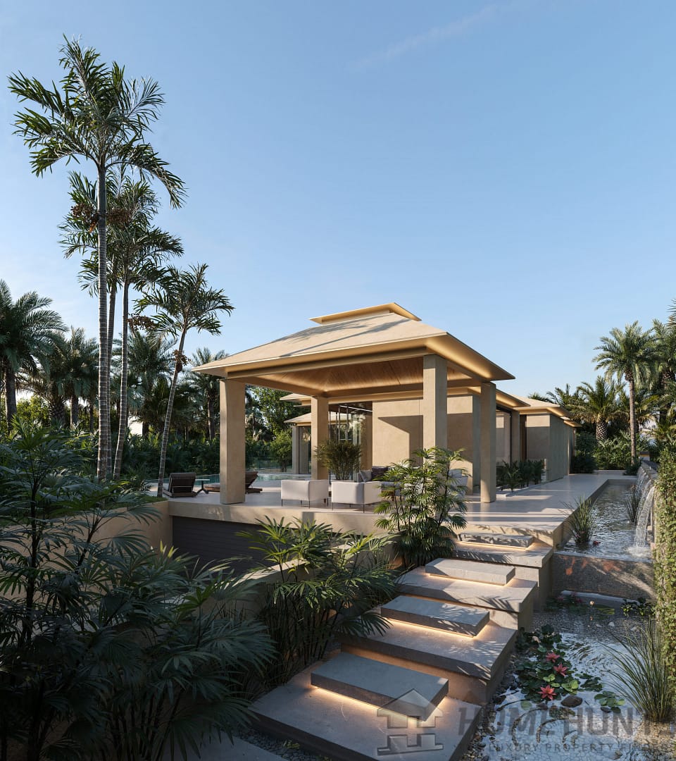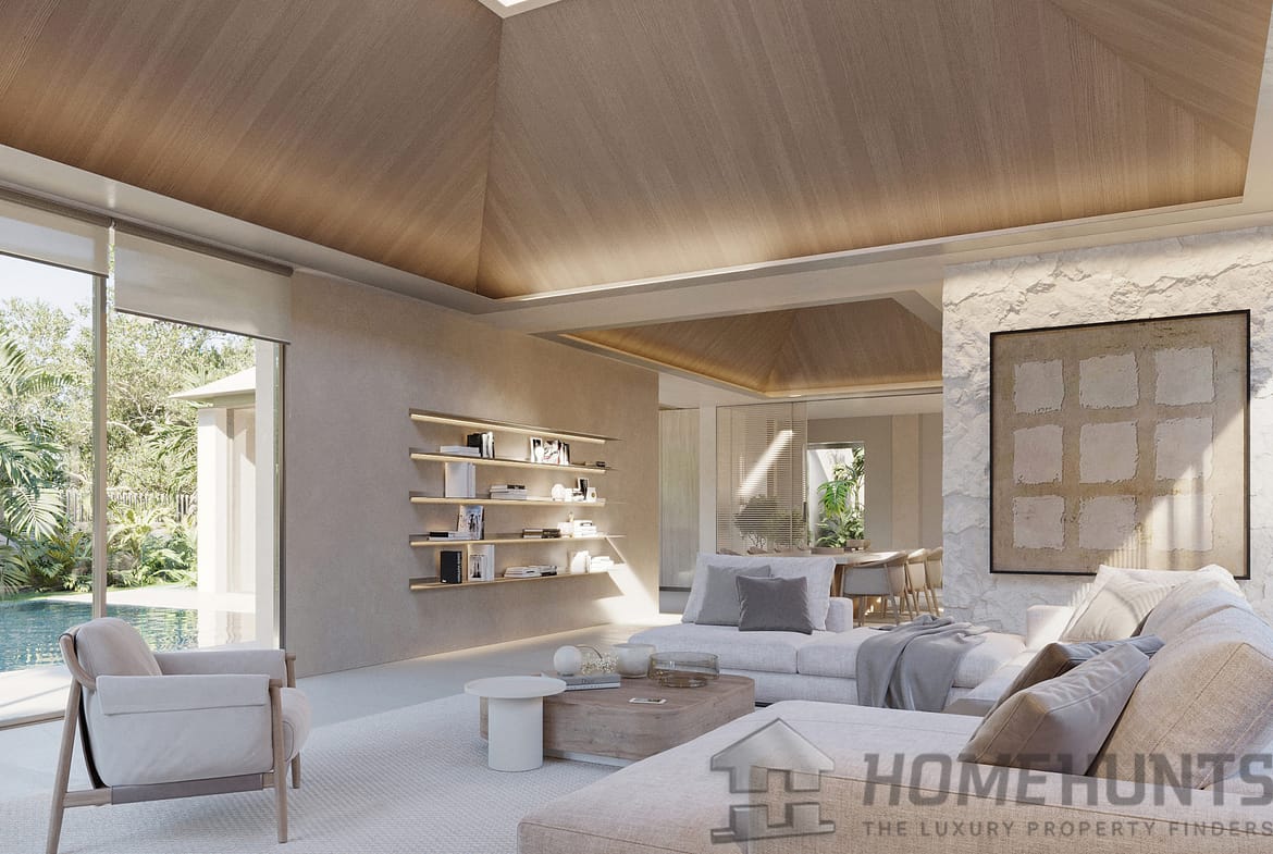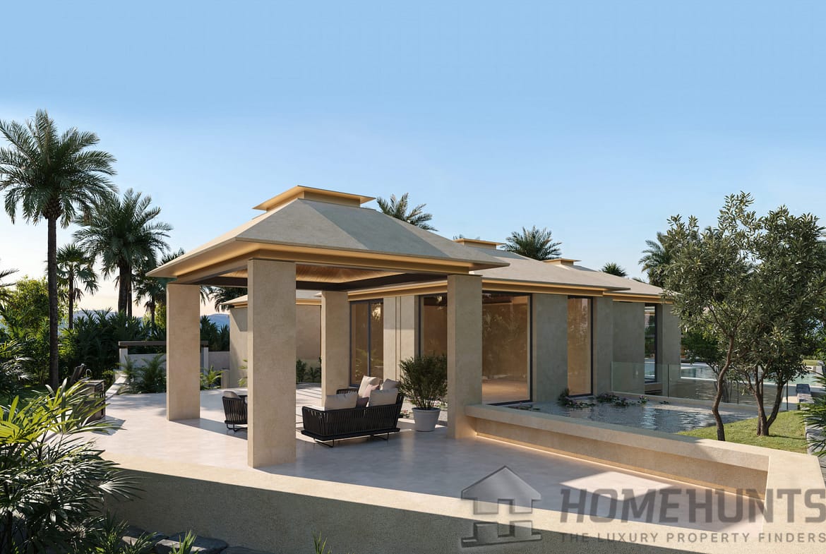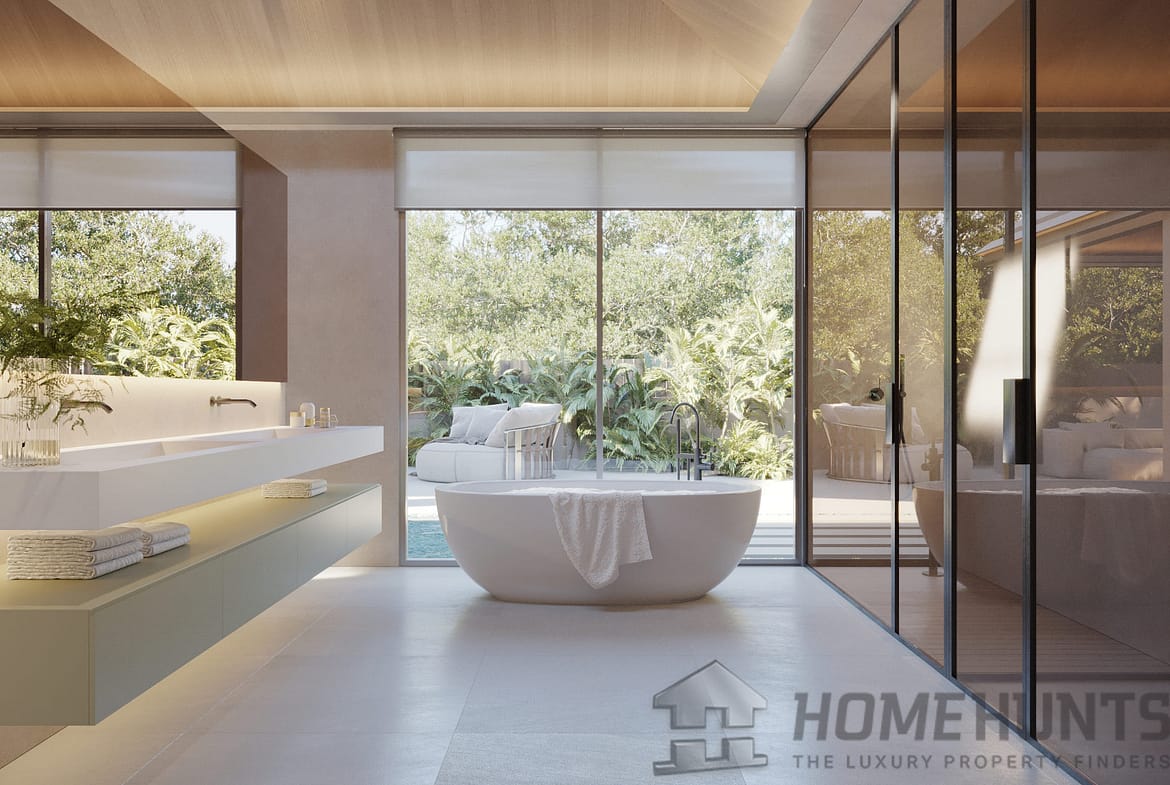 Created by ER Arquitectos and styled by GC Studio, the villa offers a seamless open-plan layout with soaring double-height ceilings and fluid transitions between indoor and outdoor living. It features five spacious bedrooms with en-suite bathrooms, including a stunning master suite with its own designer bathroom, private dressing area. The living spaces are complemented by a state-of-the-art kitchen, an elegant lounge, and a series of social areas that extend effortlessly to the exterior.